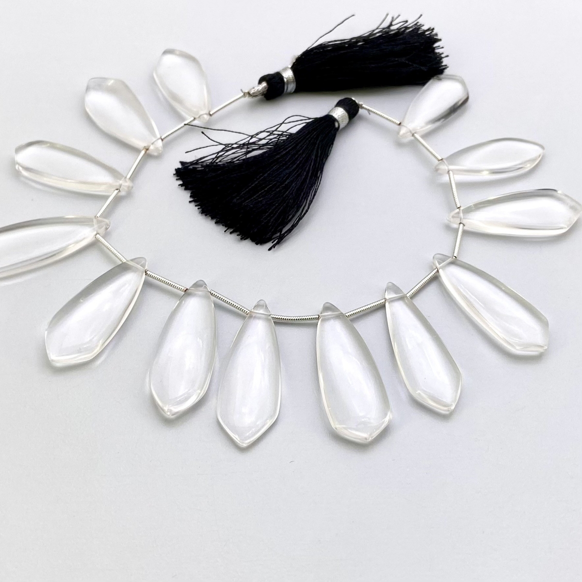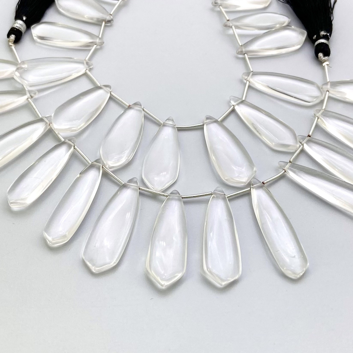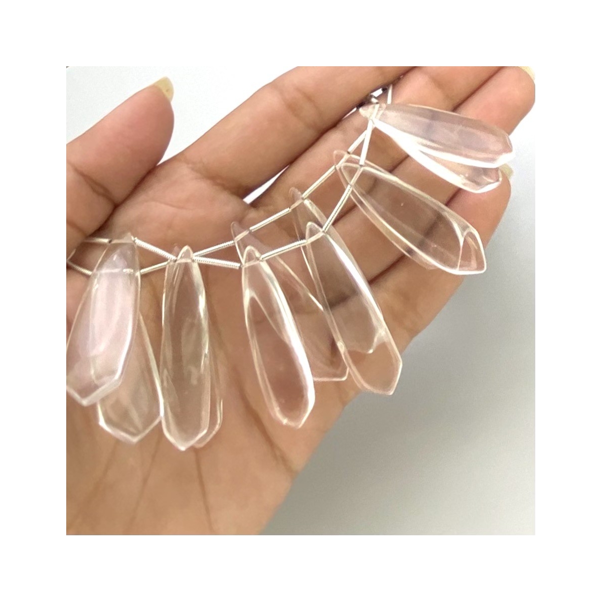 Buy This "AAA" Grade Side Drilled 28-40mm Smooth Fancy Shape Natural Crystal Quartz (Un-Treated) Gemstone Beads Lot. You Will Receive Approximately 26 Beads on 2 Strands of 8 Inch. With a Total Weight of 410.50 Cts.. This Crystal Quartz Stone is Originated From Brazil and Masterfully Handcrafted by The Experienced Artisans of Jaipur (India).