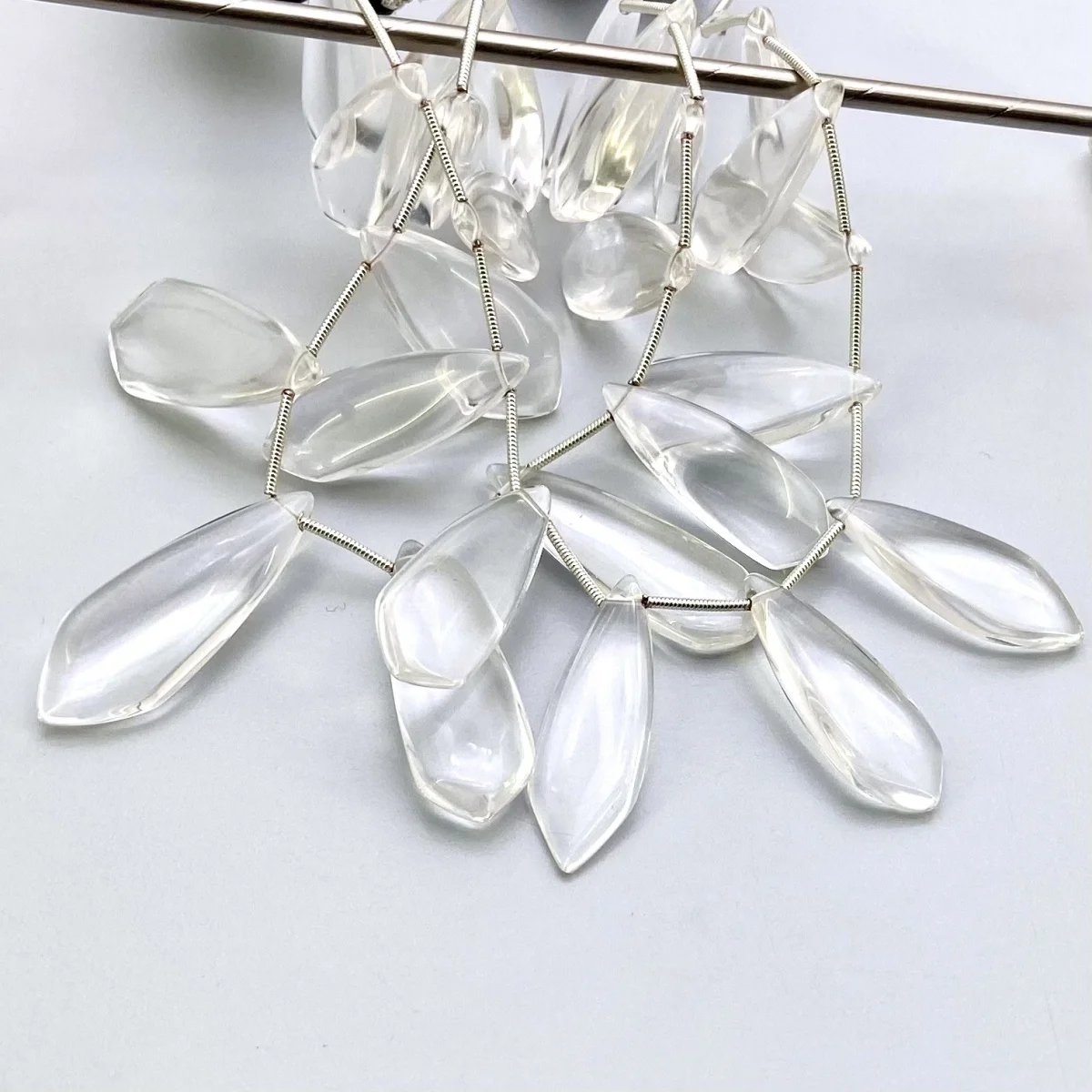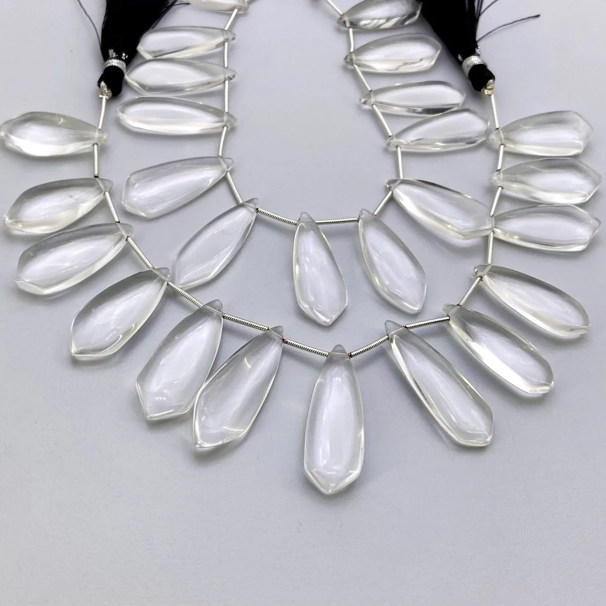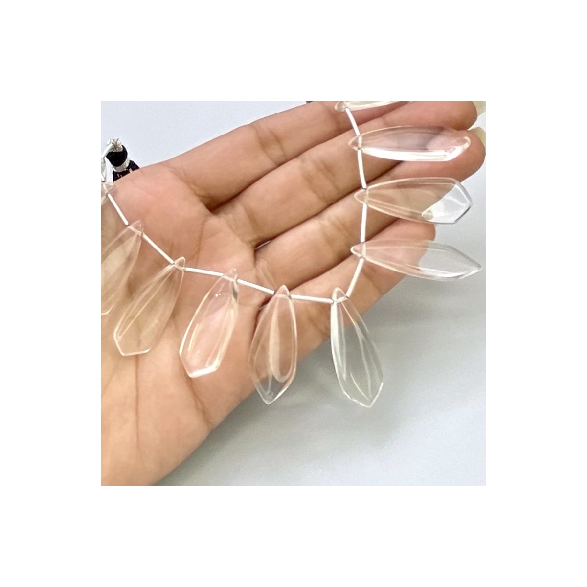 Buy This "AAA" Grade Side Drilled 25-35mm Smooth Fancy Shape Natural Crystal Quartz (Un-Treated) Gemstone Beads Lot. You Will Receive Approximately 26 Beads on 2 Strands of 8 Inch. With a Total Weight of 372.5 Cts.. This Crystal Quartz Stone is Originated From Brazil and Masterfully Handcrafted by The Experienced Artisans of Jaipur (India).