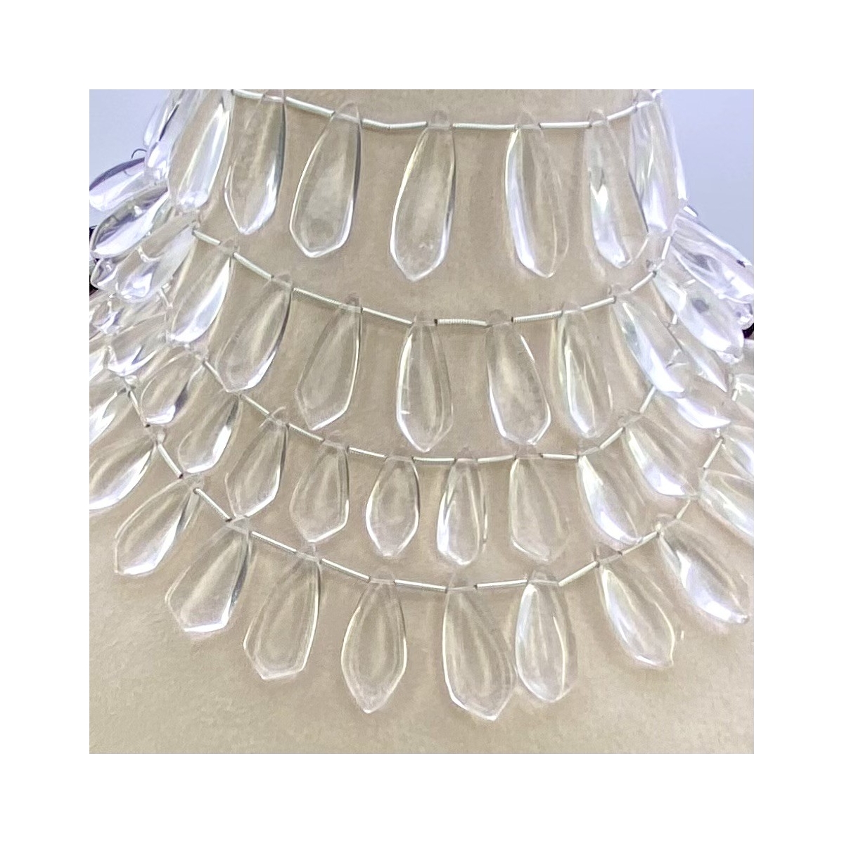 Buy This "AAA" Grade Side Drilled 18-27mm Smooth Fancy Shape Natural Crystal Quartz (Un-Treated) Gemstone Beads Lot. You Will Receive Approximately 63 Beads on 4 Strands of 8 Inch. With a Total Weight of 525 Cts.. This Crystal Quartz Stone is Originated From Brazil and Masterfully Handcrafted by The Experienced Artisans of Jaipur (India).
