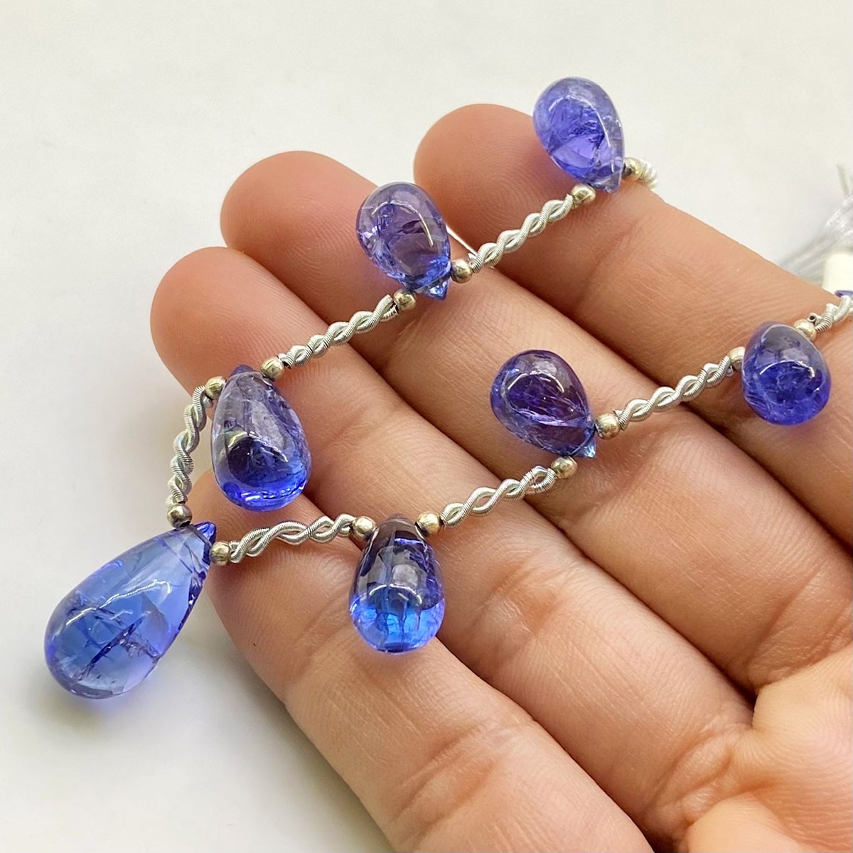Buy This "AA+" Grade Side Drilled 11-19mm Smooth Drop Shape Natural Tanzanite (Heated) Gemstone Beads Layout. You Will Receive Approximately 9 Beads on 1 Strand of 8 Inch. With a Total Weight of 68.10 Cts.. This Tanzanite Stone is Originated From Tanzania and Masterfully Handcrafted by The Experienced Artisans of Jaipur (India).