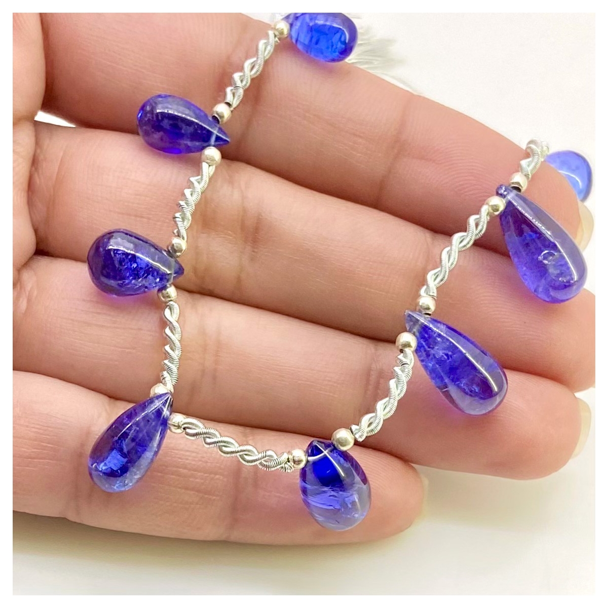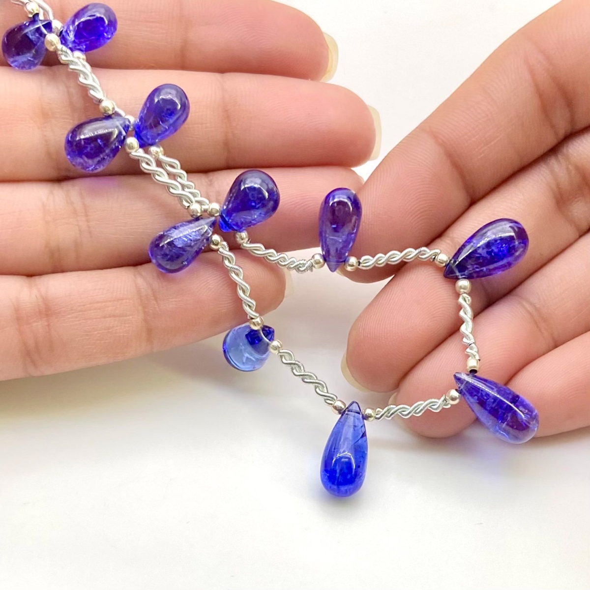 Buy This "AA+" Grade Side Drilled 9.5-15mm Smooth Drop Shape Natural Tanzanite (Heated) Gemstone Beads Layout. You Will Receive Approximately 11 Beads on 1 Strand of 9 Inch. With a Total Weight of 55.95 Cts.. This Tanzanite Stone is Originated From Tanzania and Masterfully Handcrafted by The Experienced Artisans of Jaipur (India).