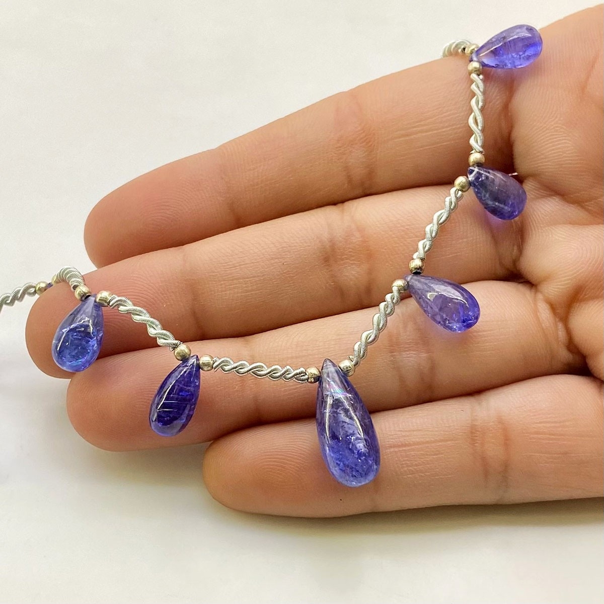 Buy This "AA+" Grade Side Drilled 9.5-17mm Smooth Drop Shape Natural Tanzanite (Heated) Gemstone Beads Layout. You Will Receive Approximately 11 Beads on 1 Strand of 9 Inch. With a Total Weight of 44.30 Cts.. This Tanzanite Stone is Originated From Tanzania and Masterfully Handcrafted by The Experienced Artisans of Jaipur (India).
