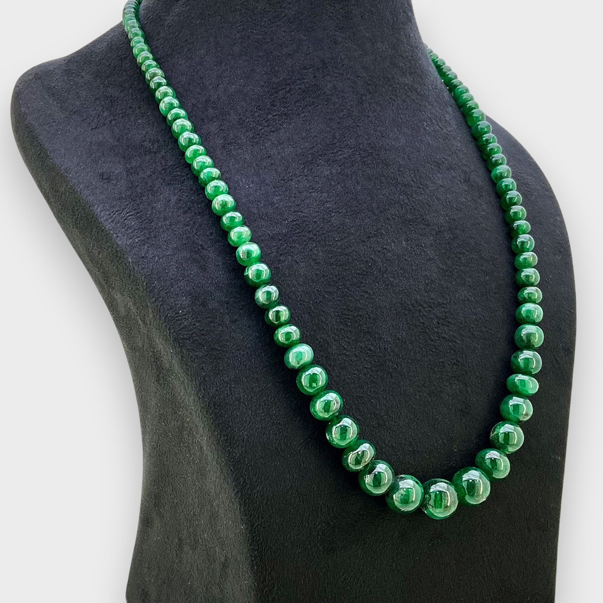 Buy This "A" Grade Center Drilled 4-13mm Smooth Rondelle Shape Natural Emerald (Un-Treated) Beads Necklace. You Will Receive Approximately 83 Beads on 1 Strand of 19 Inch. With a Total Weight of 295.2 Cts.. This Emerald Stone is Originated From Zambia and Masterfully Handcrafted by The Experienced Artisans of Jaipur (India). This Emerald Beads Necklace is Sold as Pictured and it is Ready to be Shipped From India Within 1-2 Working Days.