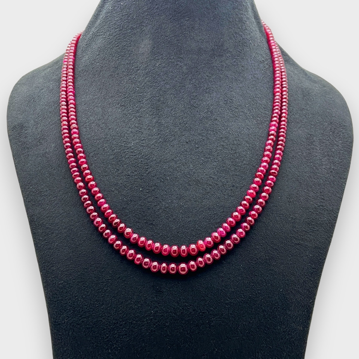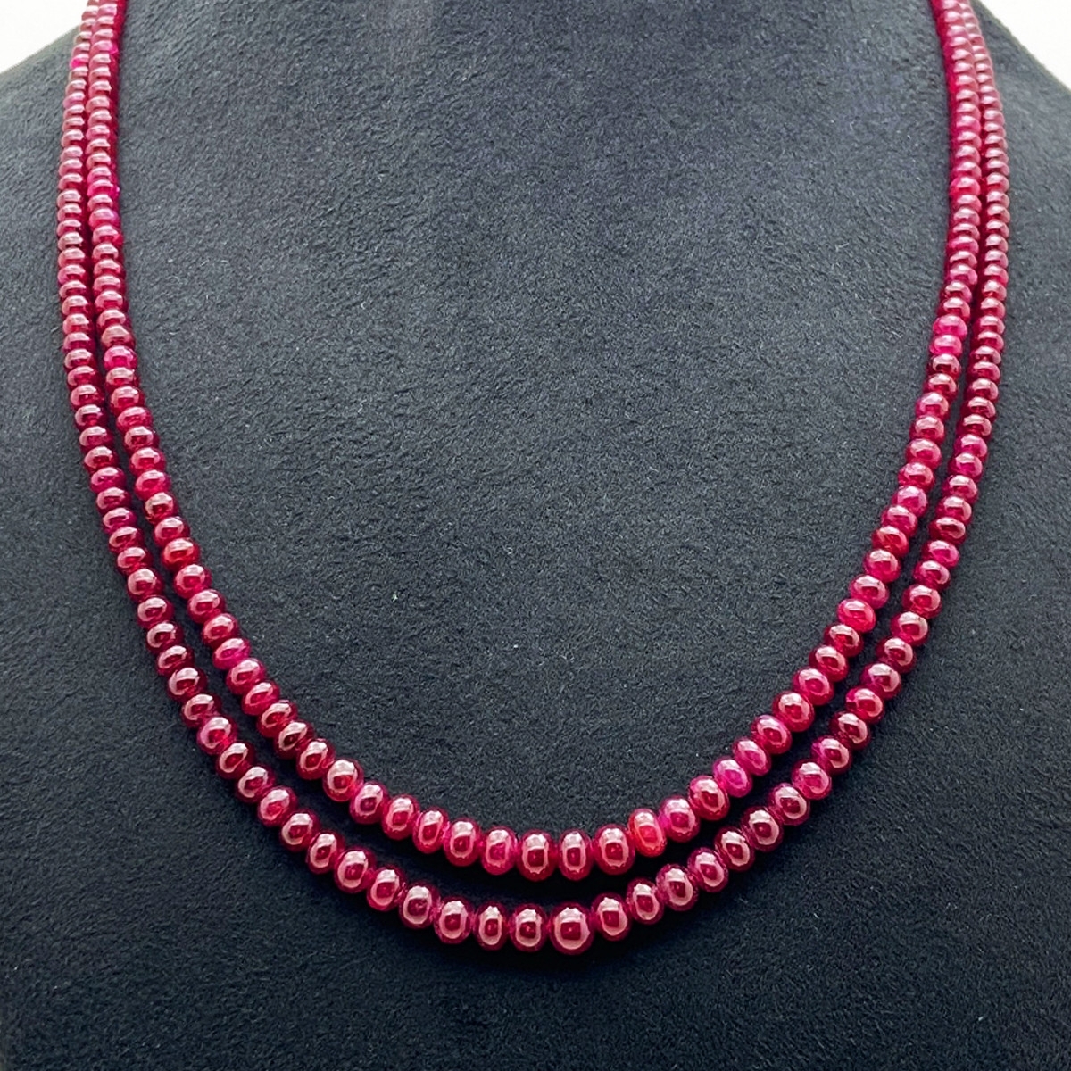 Ruby 4-6mm Smooth Rondelle Shape AA Grade Beads Necklace - Total 2 Strands of 18-19 Inch.