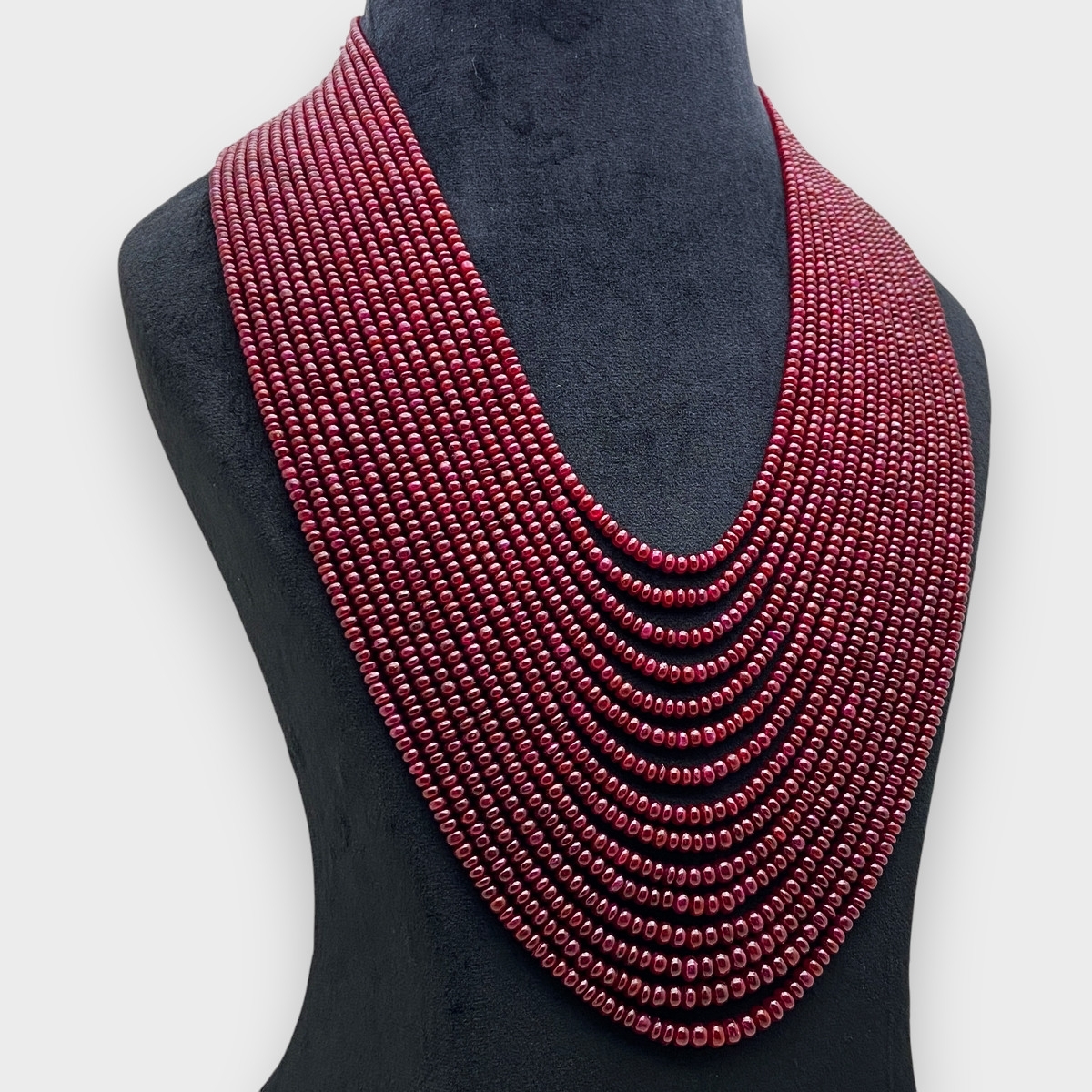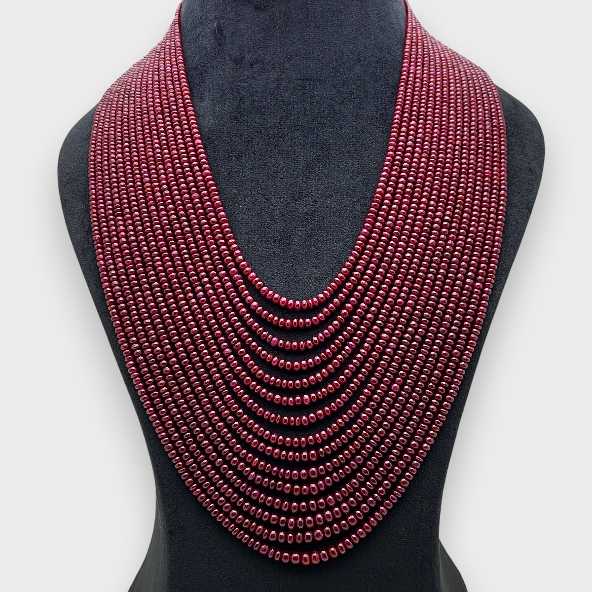 Ruby 3-5.5mm Smooth Rondelle Shape AA Grade Beads Necklace - Total 15 Strands of 18-28 Inch.