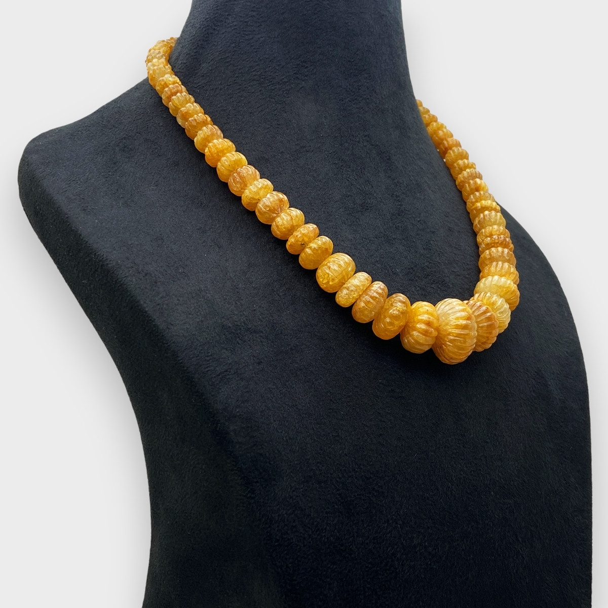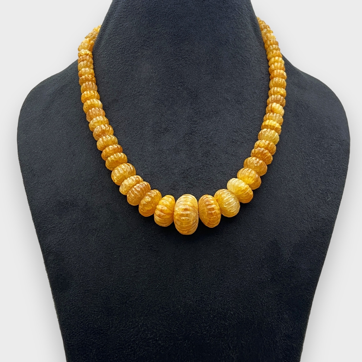 Yellow Sapphire 8-21mm Carved Melon Shape A+ Grade Beads Necklace - Total 1 Strand of 16 Inch.