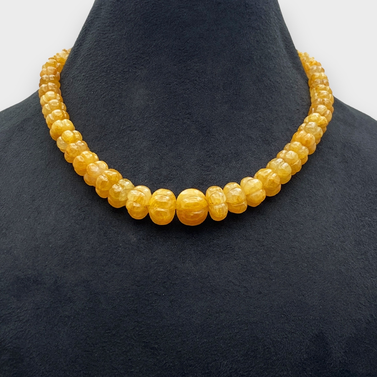 Yellow Sapphire 7-13.5mm Carved Melon Shape A+ Grade Beads Necklace - Total 1 Strand of 16 Inch.