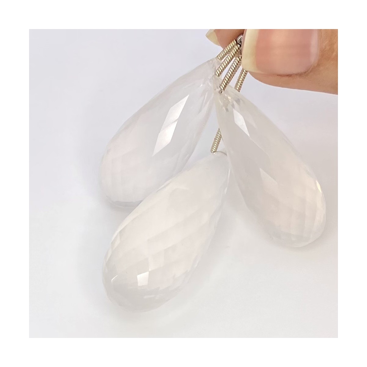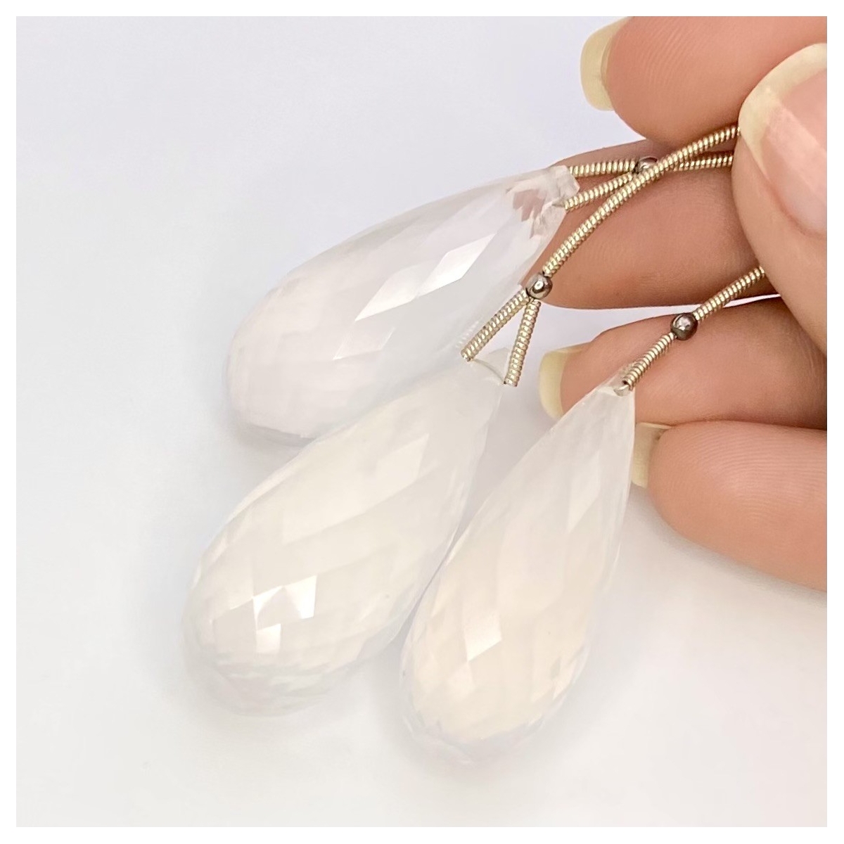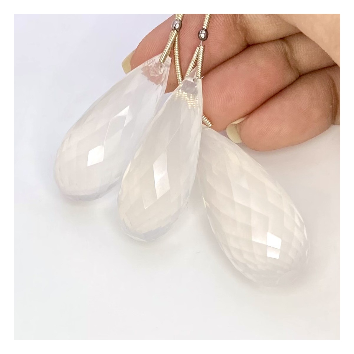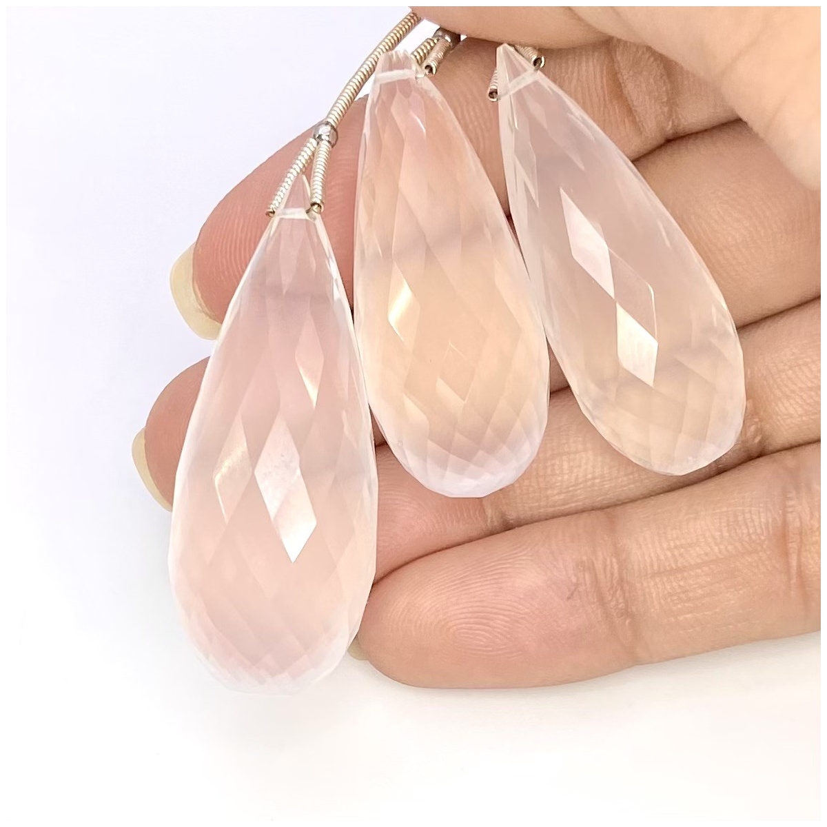 Buy This "AA" Grade 35-41mm Briolette Drop Shape Natural Ice Quartz (Un-Treated) Matched Gemstone Beads Set. You Will Receive 3 Pcs. With a Total Weight of 162 Carat. This Ice Quartz Stone is Originated From Brazil and Masterfully Handcrafted by The Experienced Artisans of Jaipur (India).