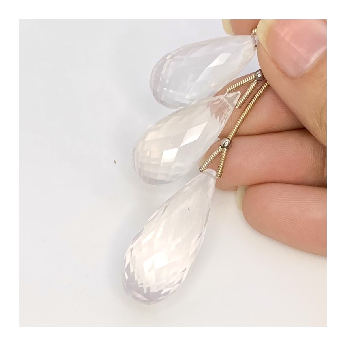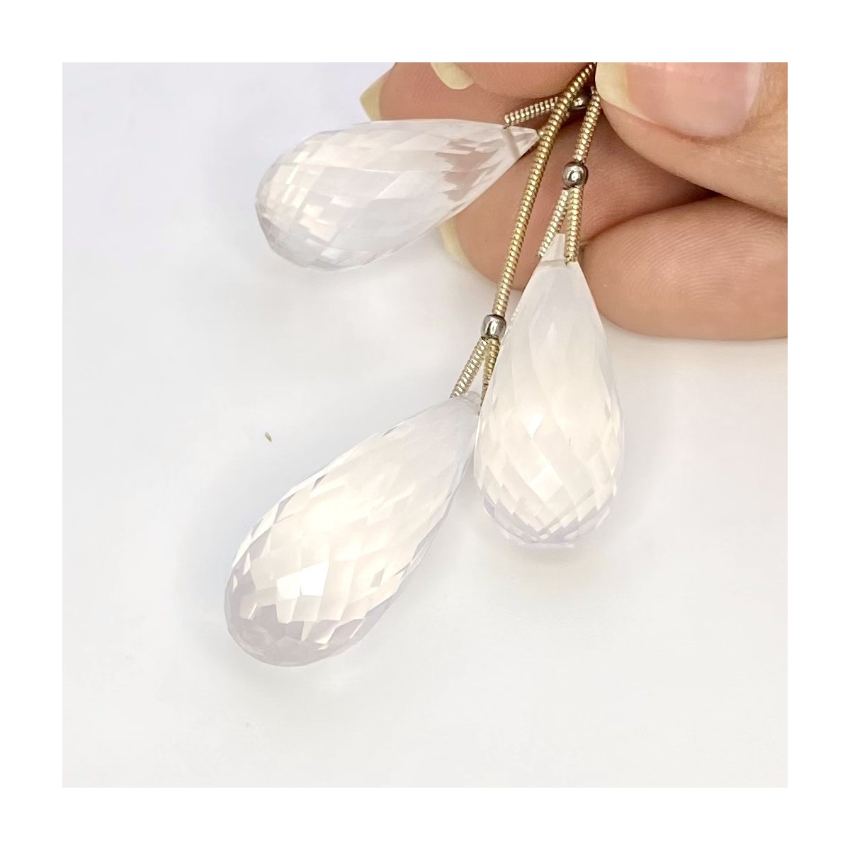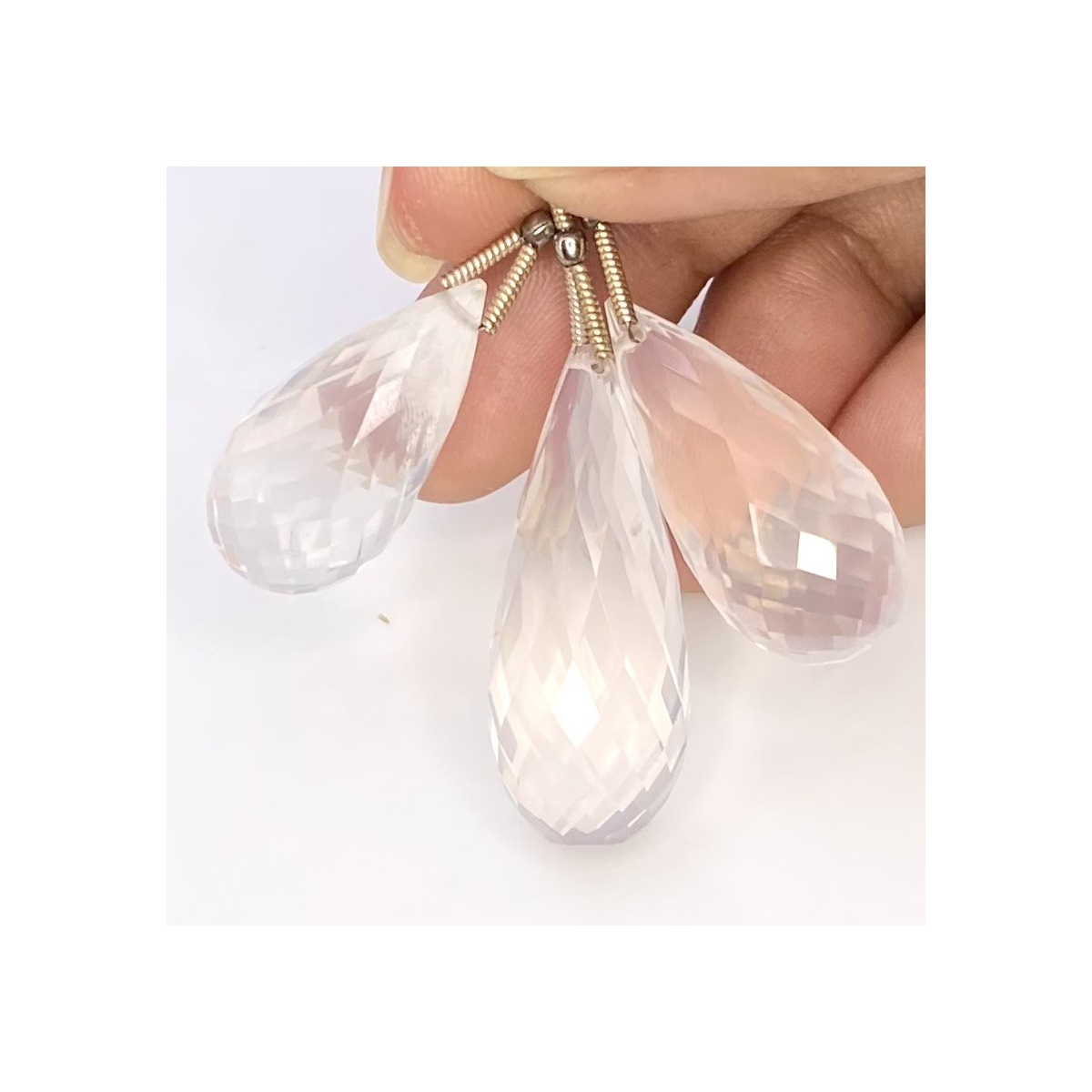 Buy This "AA" Grade 25-31mm Briolette Drop Shape Natural Ice Quartz (Un-Treated) Matched Gemstone Beads Set. You Will Receive 3 Pcs. With a Total Weight of 78.75 Cts.. This Ice Quartz Stone is Originated From Brazil and Masterfully Handcrafted by The Experienced Artisans of Jaipur (India).
