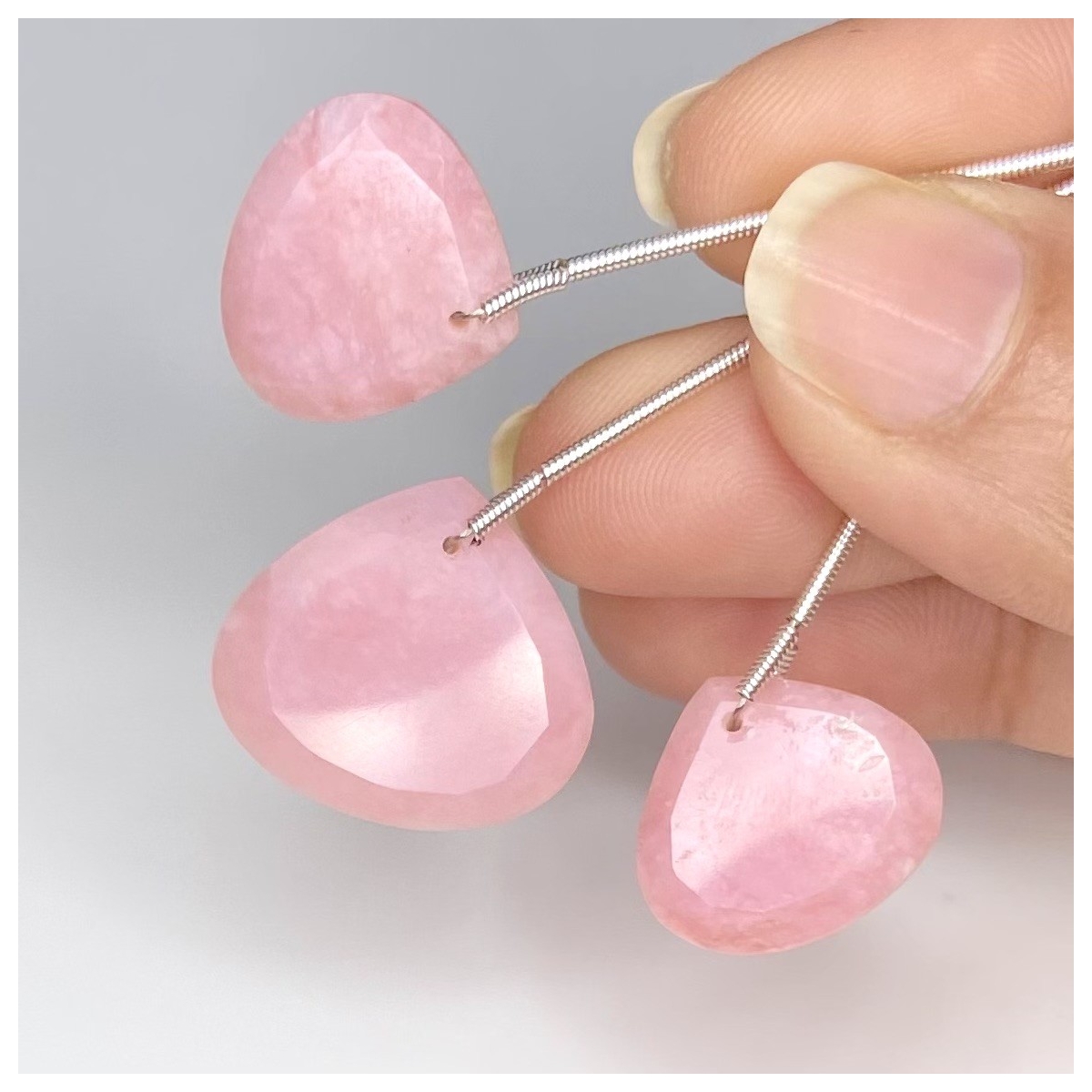 Buy This "AA+" Grade 16-19mm Faceted Heart Shape Natural Pink Opal (Un-Treated) Matched Gemstone Beads Set. You Will Receive 3 Pcs. With a Total Weight of 29.70 Cts.. This Pink Opal Stone is Originated From Australia and Masterfully Handcrafted by The Experienced Artisans of Jaipur (India).