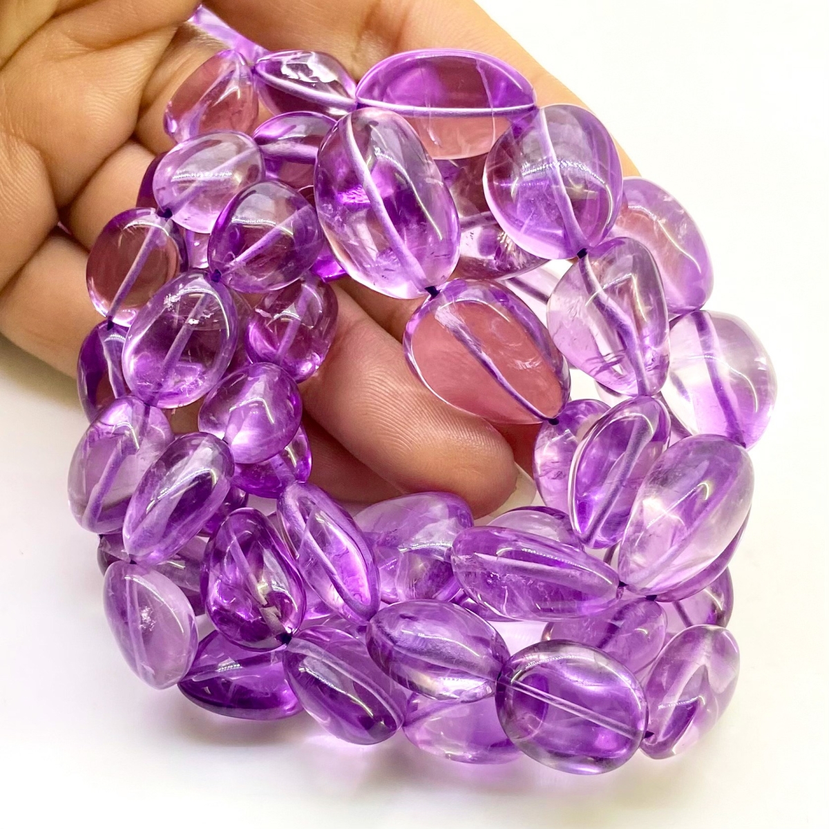 Buy This "AA" Grade Center Drilled 13-21mm Smooth Nugget Shape Natural Brazilian Amethyst (Un-Treated) Gemstone Beads Strand. You Will Receive Approximately 45 Beads on 1 Strand of 15 Inch. With a Total Weight of 320 Cts.. This Brazilian Amethyst Stone is Originated From Brazil and Masterfully Handcrafted by The Experienced Artisans of Jaipur (India).