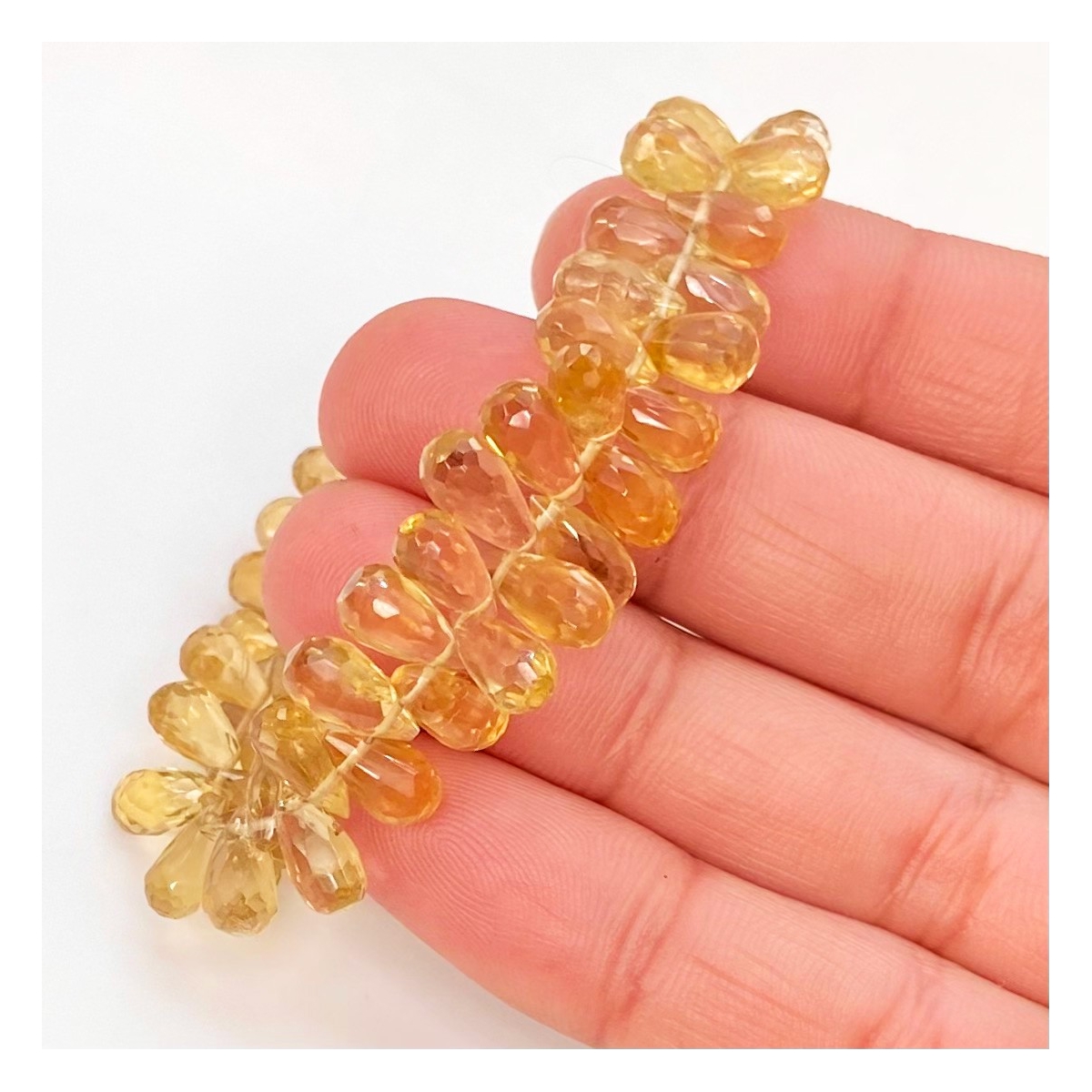 Buy This "AAA" Grade Side Drilled 7-10.5mm Briolette Drop Shape Natural Canary Quartz (Heated) Gemstone Beads Strand. You Will Receive Approximately 67 Beads on 1 Strand of 6 Inch. With a Total Weight of 71.20 Cts.. This Canary Quartz Stone is Originated From Brazil and Masterfully Handcrafted by The Experienced Artisans of Jaipur (India).