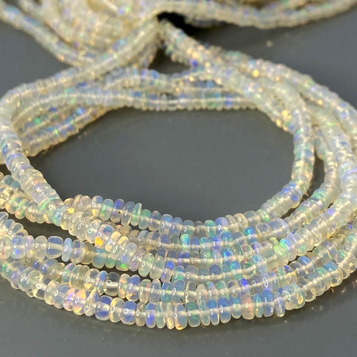 Buy This "AA+" Grade Center Drilled 3.5-4mm Smooth Rondelle Shape Natural Ethiopian Opal (Un-Treated) Gemstone Beads Strand. You Will Receive Approximately 270 Beads on 1 Strand of 16 Inch. With a Total Weight of 25 Cts.. This Ethiopian Opal Stone is Originated From Ethiopia and Masterfully Handcrafted by The Experienced Artisans of Jaipur (India).