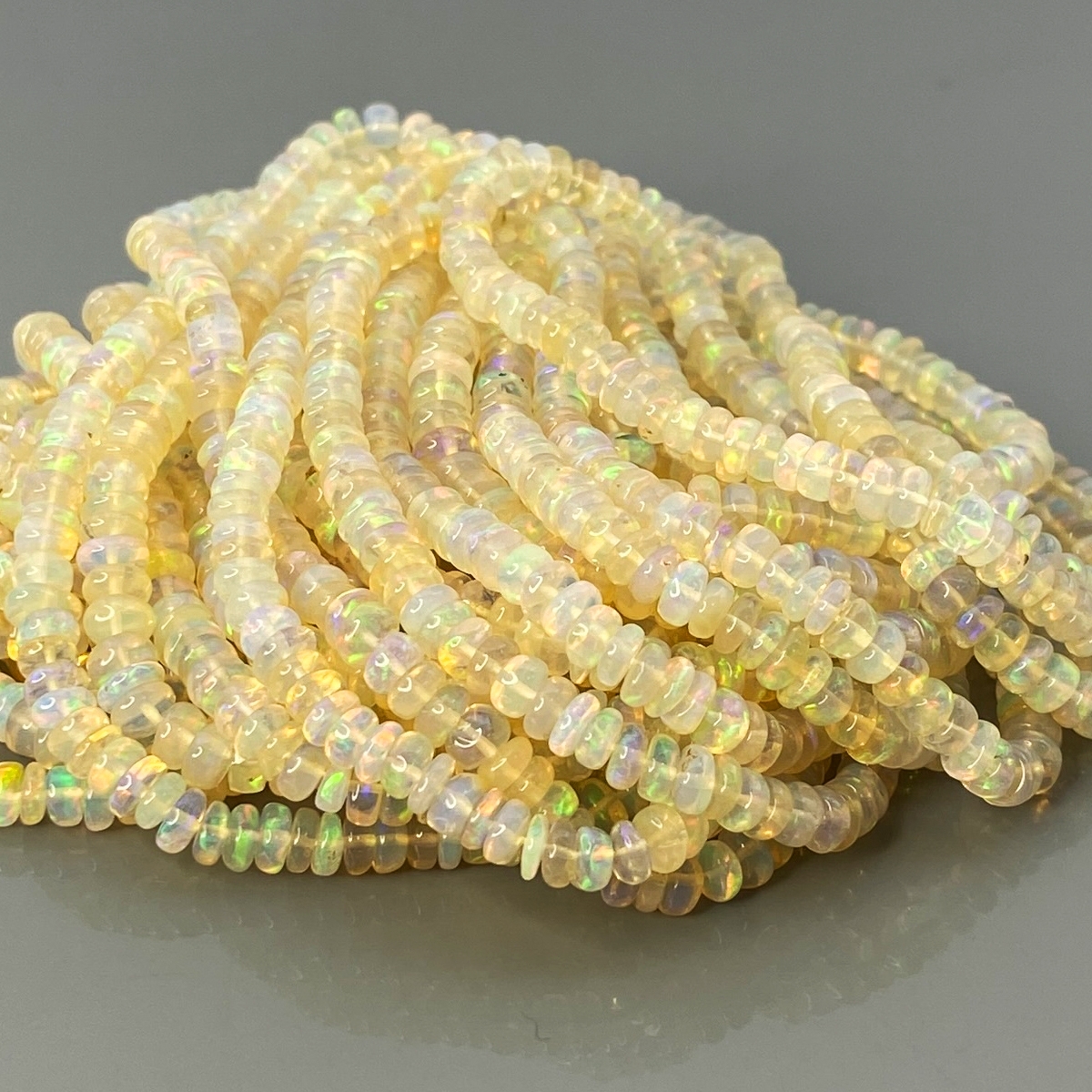 Buy This "AA+" Grade Center Drilled 4-4.5mm Smooth Rondelle Shape Natural Ethiopian Opal (Un-Treated) Gemstone Beads Strand. You Will Receive Approximately 210 Beads on 1 Strand of 16 Inch. With a Total Weight of 35 Cts.. This Ethiopian Opal Stone is Originated From Ethiopia and Masterfully Handcrafted by The Experienced Artisans of Jaipur (India).