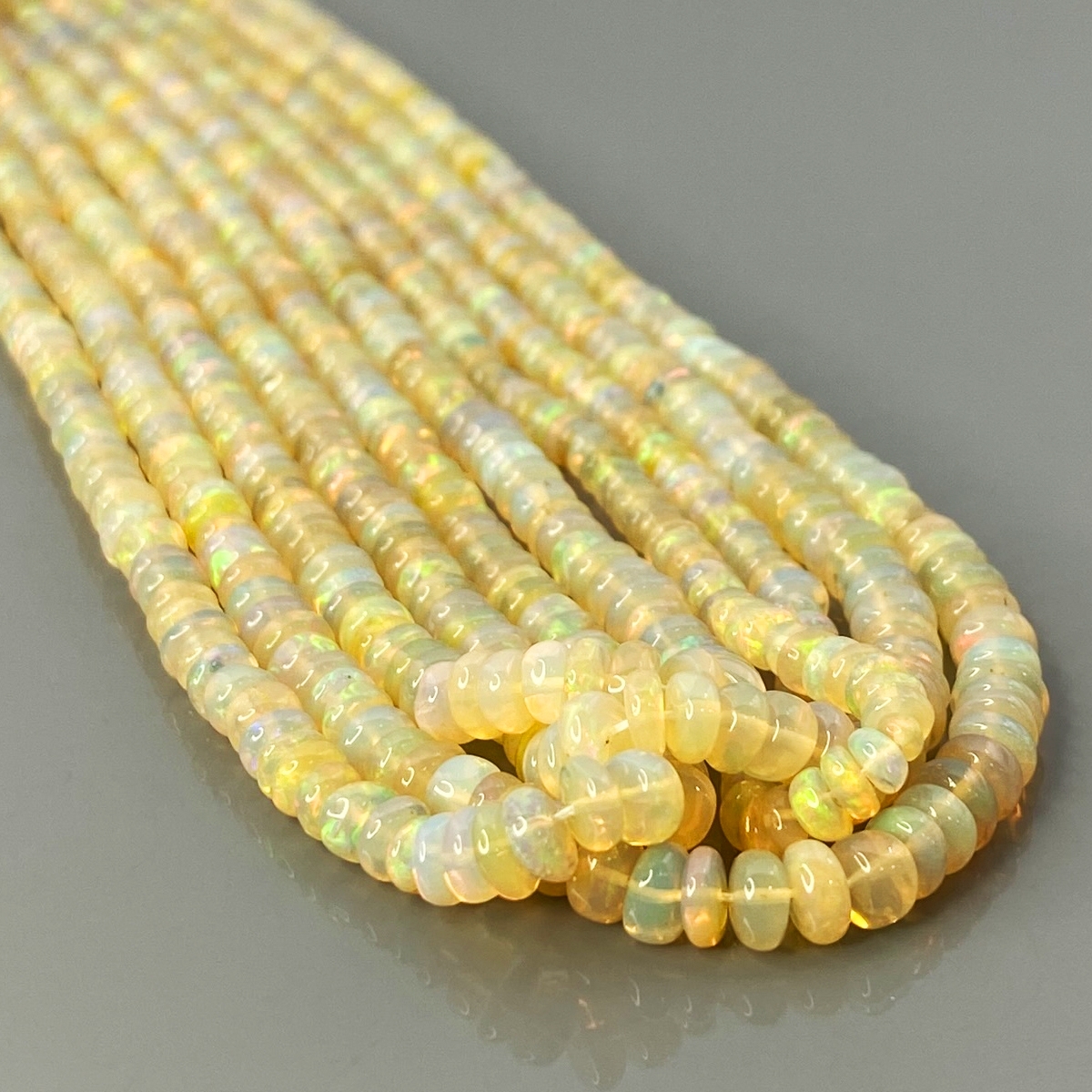 Buy This "AA+" Grade Center Drilled 4-4.5mm Smooth Rondelle Shape Natural Ethiopian Opal (Un-Treated) Gemstone Beads Strand. You Will Receive Approximately 210 Beads on 1 Strand of 16 Inch. With a Total Weight of 35 Cts.. This Ethiopian Opal Stone is Originated From Ethiopia and Masterfully Handcrafted by The Experienced Artisans of Jaipur (India).
