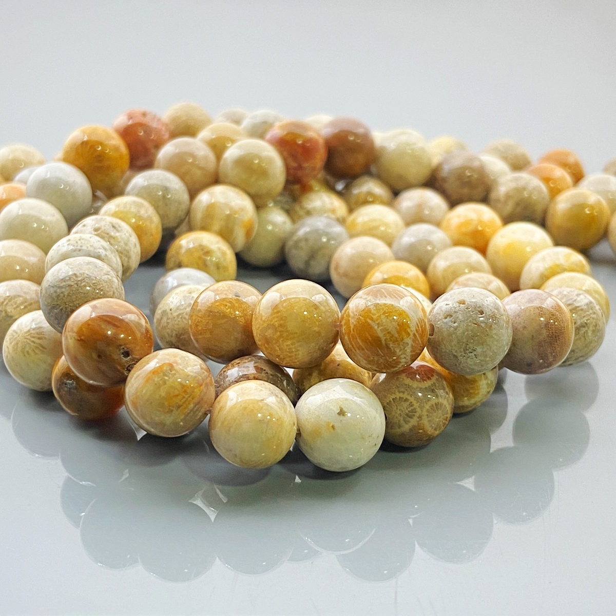 Buy This "AA" Grade Center Drilled 10mm Smooth Round Shape Natural Fossil Coral (Un-Treated) Gemstone Beads Lot. You Will Receive Approximately 151 Beads on 4 Strands of 15 Inch. With a Total Weight of 1060 Cts.. This Fossil Coral Stone is Originated From USA and Masterfully Handcrafted by The Experienced Artisans of Jaipur (India).