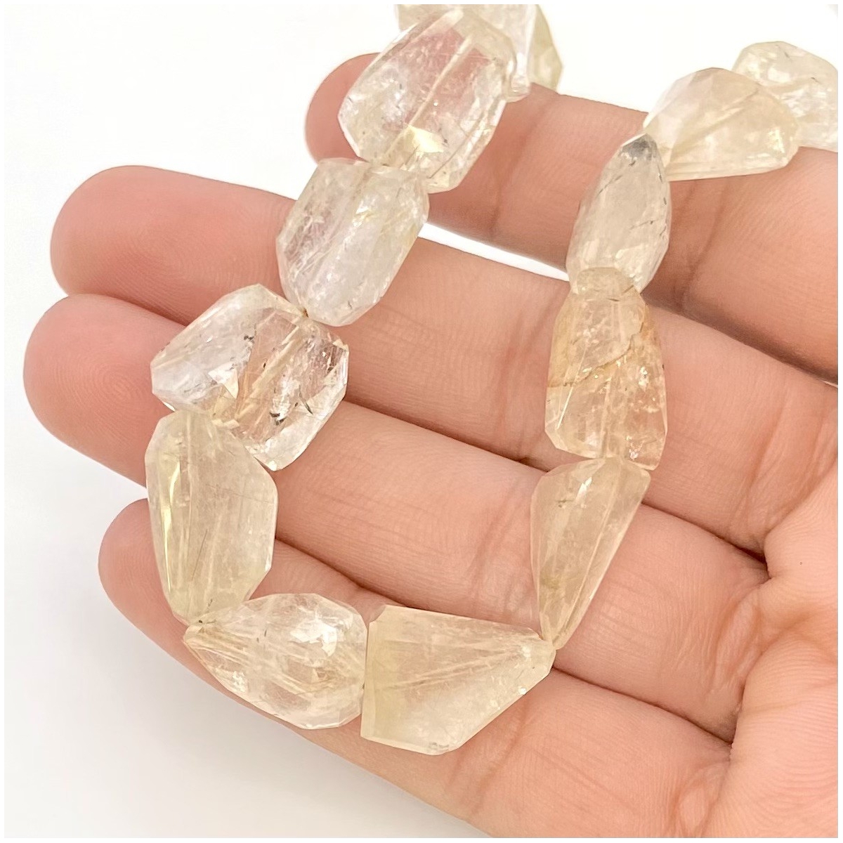 Buy This "A+" Grade Center Drilled 11-16.5mm Step Cut Nugget Shape Natural Golden Rutile (Un-Treated) Gemstone Beads Strand. You Will Receive Approximately 28 Beads on 1 Strand of 15 Inch. With a Total Weight of 253.95 Cts.. This Golden Rutile Stone is Originated From Brazil and Masterfully Handcrafted by The Experienced Artisans of Jaipur (India).