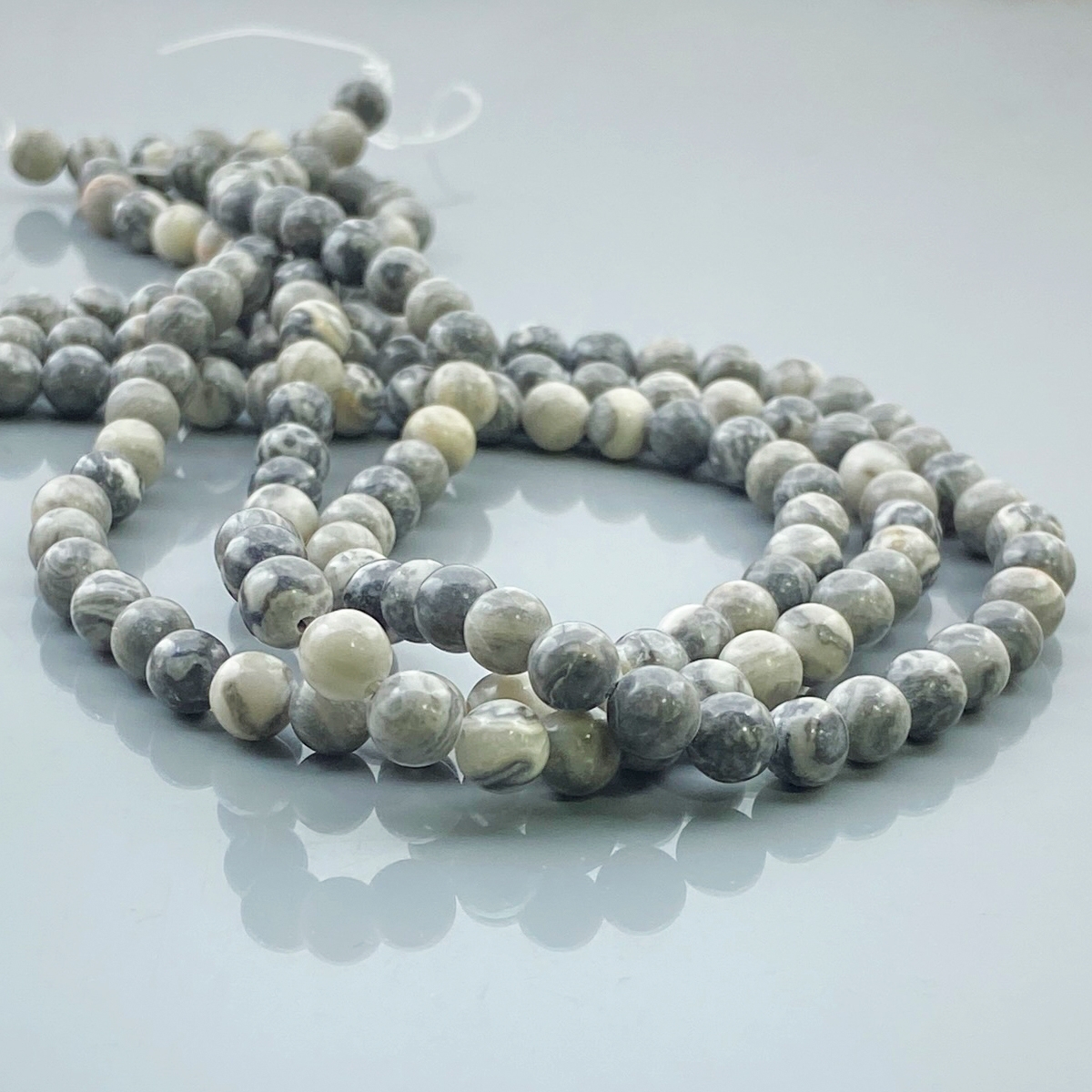Buy This "AA" Grade Center Drilled 6mm Smooth Round Shape Natural Grey Jasper (Un-Treated) Gemstone Beads Lot. You Will Receive Approximately 177 Beads on 3 Strands of 15 Inch. With a Total Weight of 370 Cts.. This Grey Jasper Stone is Originated From USA and Masterfully Handcrafted by The Experienced Artisans of Jaipur (India).