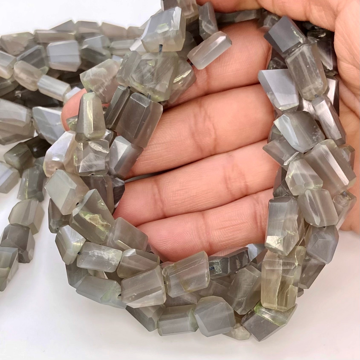 Buy This "AAA" Grade Center Drilled 8-14mm Step Cut Nugget Shape Natural Grey Moonstone (Un-Treated) Gemstone Beads Strand. You Will Receive Approximately 22 Beads on 1 Strand of 10 Inch. With a Total Weight of 115 Cts.. This Grey Moonstone Stone is Originated From India and Masterfully Handcrafted by The Experienced Artisans of Jaipur (India).