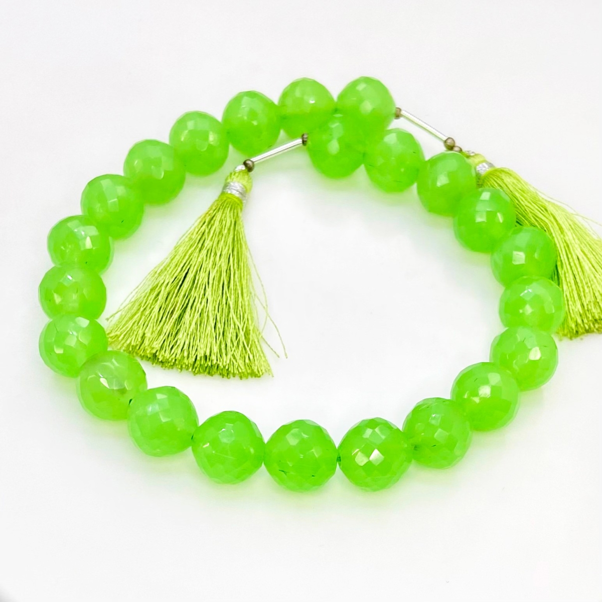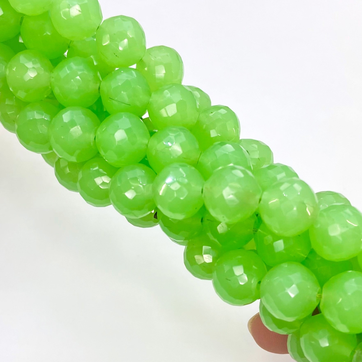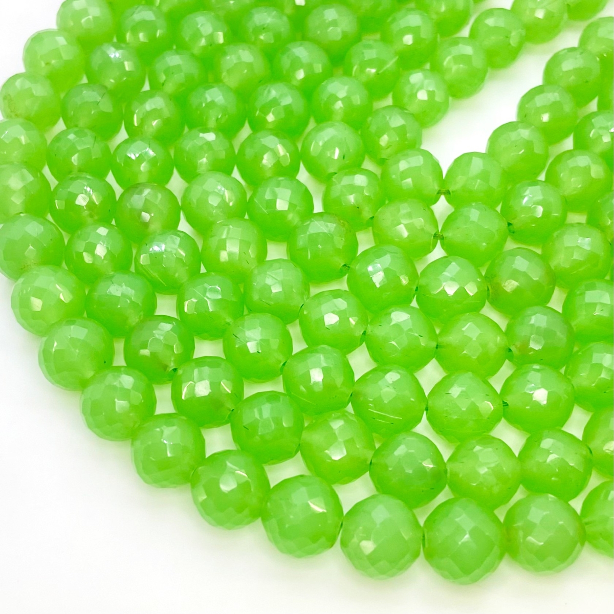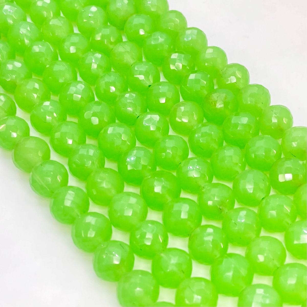 Buy This "AAA" Grade Center Drilled 11mm Faceted Round Shape Natural Green Chalcedony (Dyed) Gemstone Beads Strand. You Will Receive Approximately 22 Beads on 1 Strand of 10 Inch. With a Total Weight of 210 Cts.. This Green Chalcedony Stone is Originated From India and Masterfully Handcrafted by The Experienced Artisans of Jaipur (India).