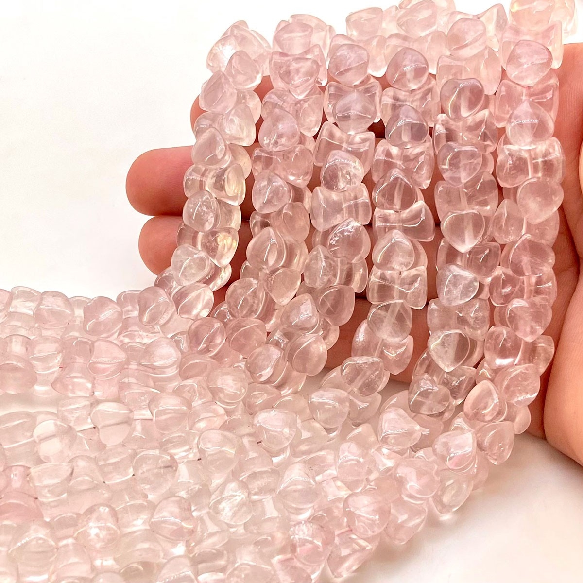 Buy This "AA" Grade Center Drilled 11mm Smooth Fancy Shape Natural Rose Quartz (Un-Treated) Gemstone Beads Strand. You Will Receive Approximately 35 Beads on 1 Strand of 8 Inch. With a Total Weight of 184 Cts.. This Rose Quartz Stone is Originated From Africa and Masterfully Handcrafted by The Experienced Artisans of Jaipur (India).