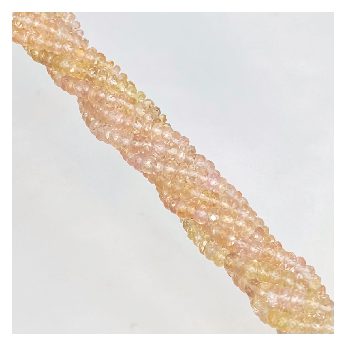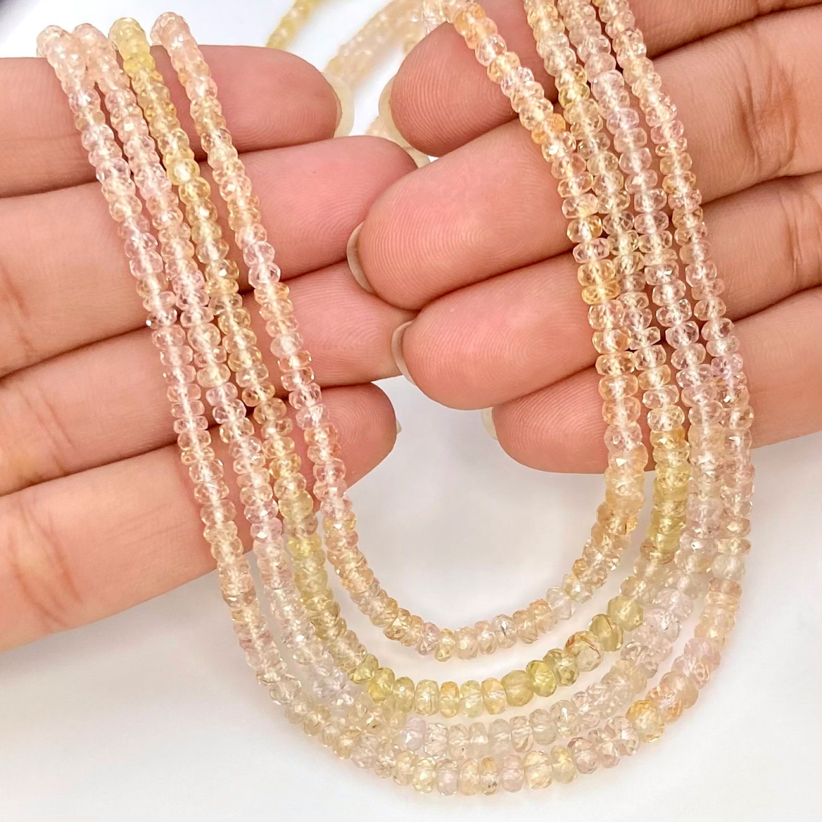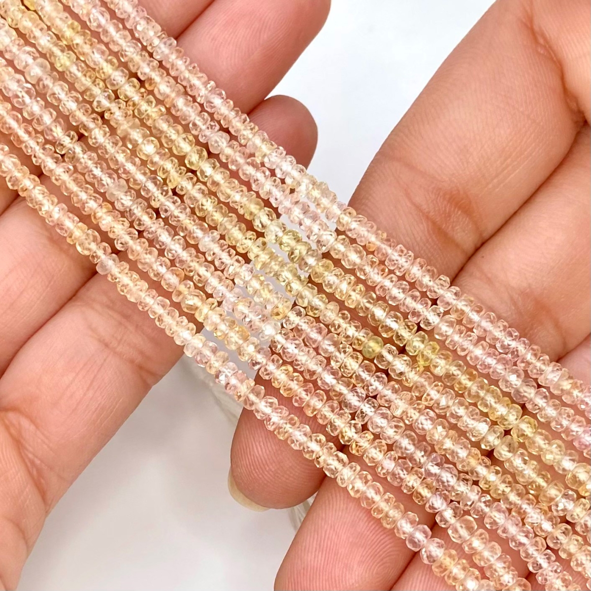 Buy This "AA" Grade Center Drilled 2.5-4.5mm Faceted Rondelle Shape Natural Pink Sapphire (Heated) Gemstone Beads Strand. You Will Receive Approximately 275 Beads on 1 Strand of 18 Inch. With a Total Weight of 55 Cts.. This Pink Sapphire Stone is Originated From Africa and Masterfully Handcrafted by The Experienced Artisans of Jaipur (India).