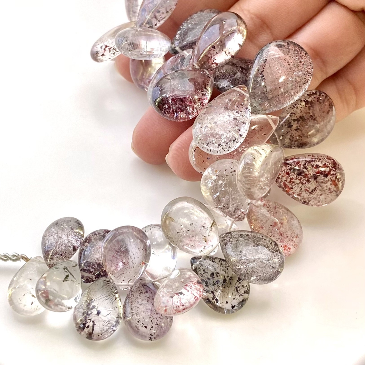 Buy This "AA+" Grade Side Drilled 15-24mm Smooth Pear Shape Natural Strawberry Quartz (Un-Treated) Gemstone Beads Strand. You Will Receive Approximately 39 Beads on 1 Strand of 7 Inch. With a Total Weight of 363.60 Cts.. This Strawberry Quartz Stone is Originated From Brazil and Masterfully Handcrafted by The Experienced Artisans of Jaipur (India).