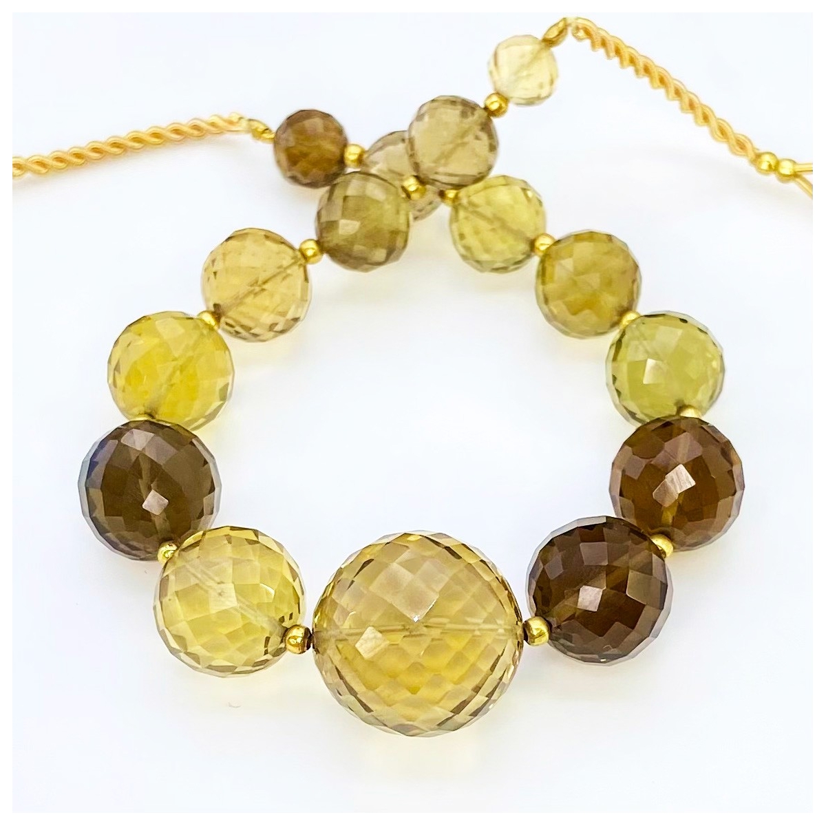 Buy This "AA+" Grade Center Drilled 6.5-16mm Faceted Round Shape Natural Whisky Quartz (Heated) Gemstone Beads Strand. You Will Receive Approximately 15 Beads on 1 Strand of 7 Inch. With a Total Weight of 136.20 Cts.. This Whisky Quartz Stone is Originated From Brazil and Masterfully Handcrafted by The Experienced Artisans of Jaipur (India).