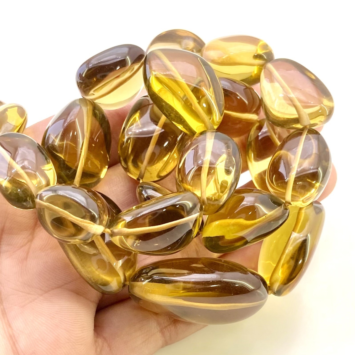 Buy This "AAA" Grade Center Drilled 18-33mm Smooth Nugget Shape Natural Whisky Quartz (Heated) Gemstone Beads Strand. You Will Receive Approximately 21 Beads on 1 Strand of 17 Inch. With a Total Weight of 600 Cts.. This Whisky Quartz Stone is Originated From Brazil and Masterfully Handcrafted by The Experienced Artisans of Jaipur (India).