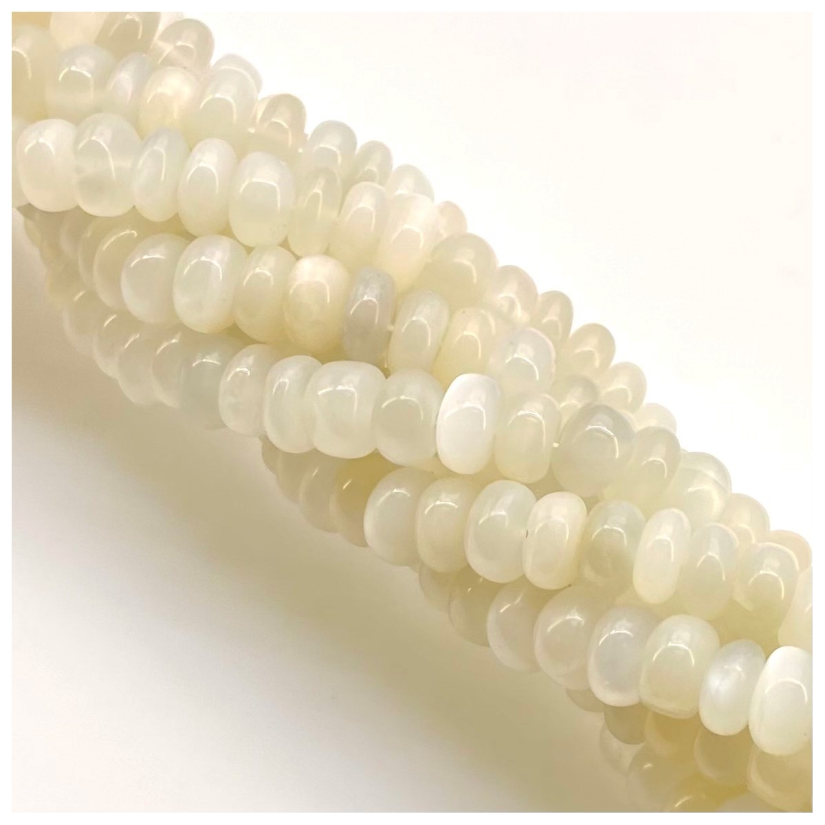 Buy This "AA" Grade Center Drilled 7-8mm Smooth Rondelle Shape Natural White Moonstone (Un-Treated) Gemstone Beads Strand. You Will Receive Approximately 75 Beads on 1 Strand of 13 Inch. With a Total Weight of 155 Cts.. This White Moonstone Stone is Originated From India and Masterfully Handcrafted by The Experienced Artisans of Jaipur (India).