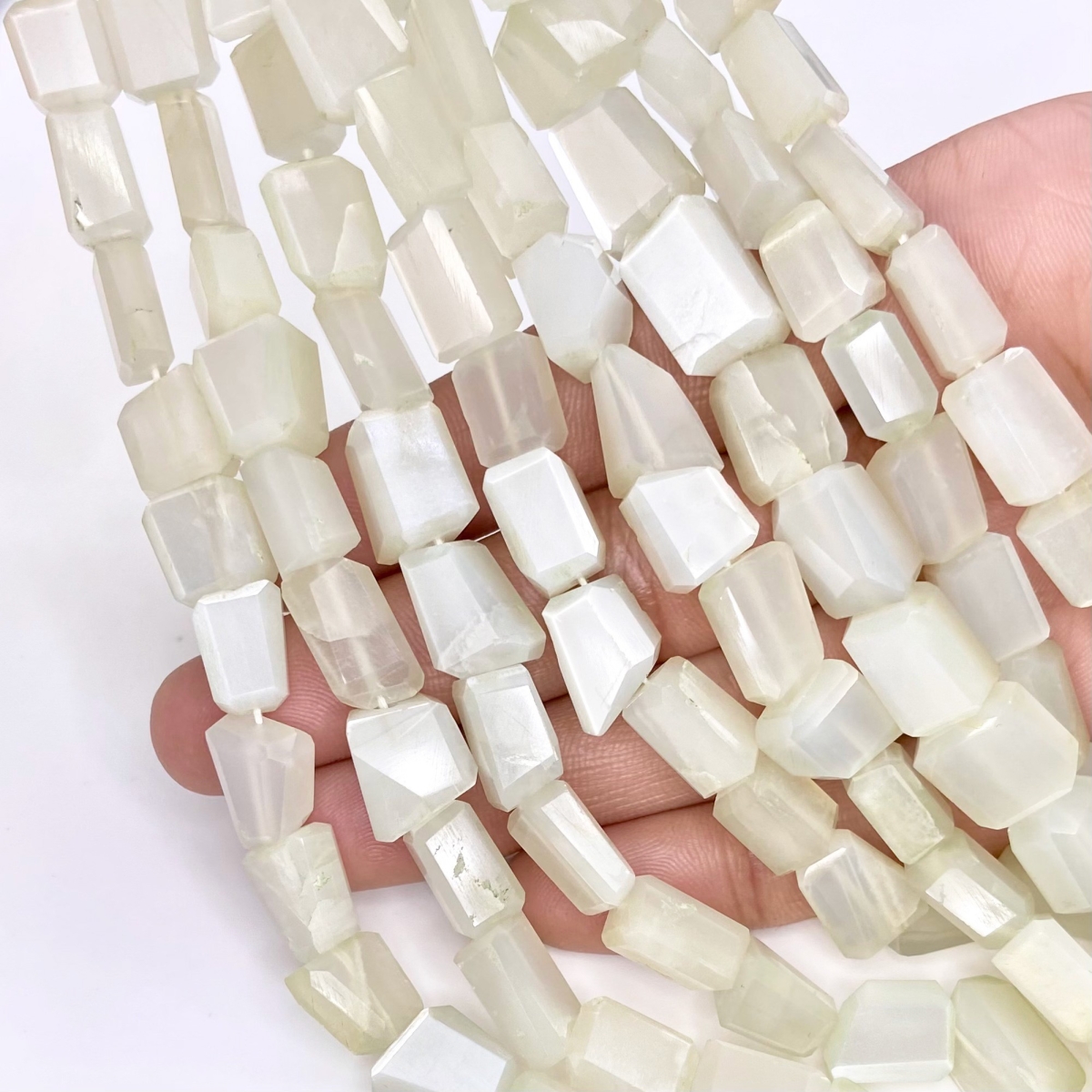 Buy This "AAA" Grade Center Drilled 10-14mm Step Cut Nugget Shape Natural White Moonstone (Un-Treated) Gemstone Beads Strand. You Will Receive Approximately 20 Beads on 1 Strand of 10 Inch. With a Total Weight of 140 Cts.. This White Moonstone Stone is Originated From India and Masterfully Handcrafted by The Experienced Artisans of Jaipur (India).