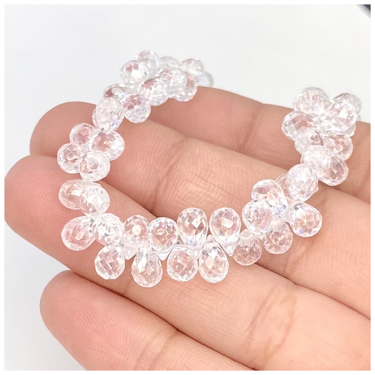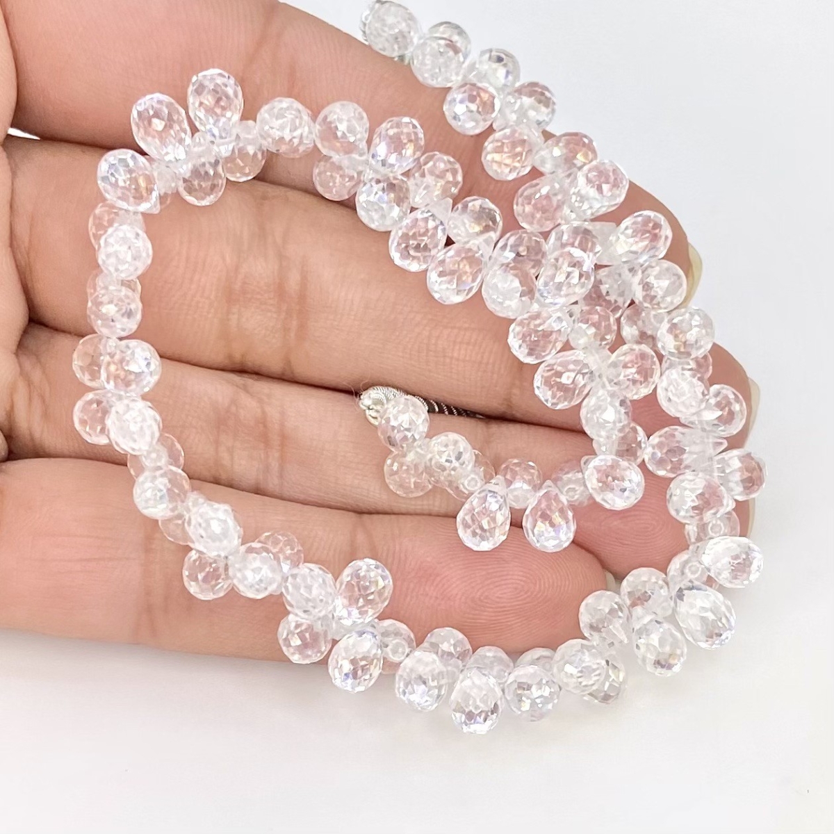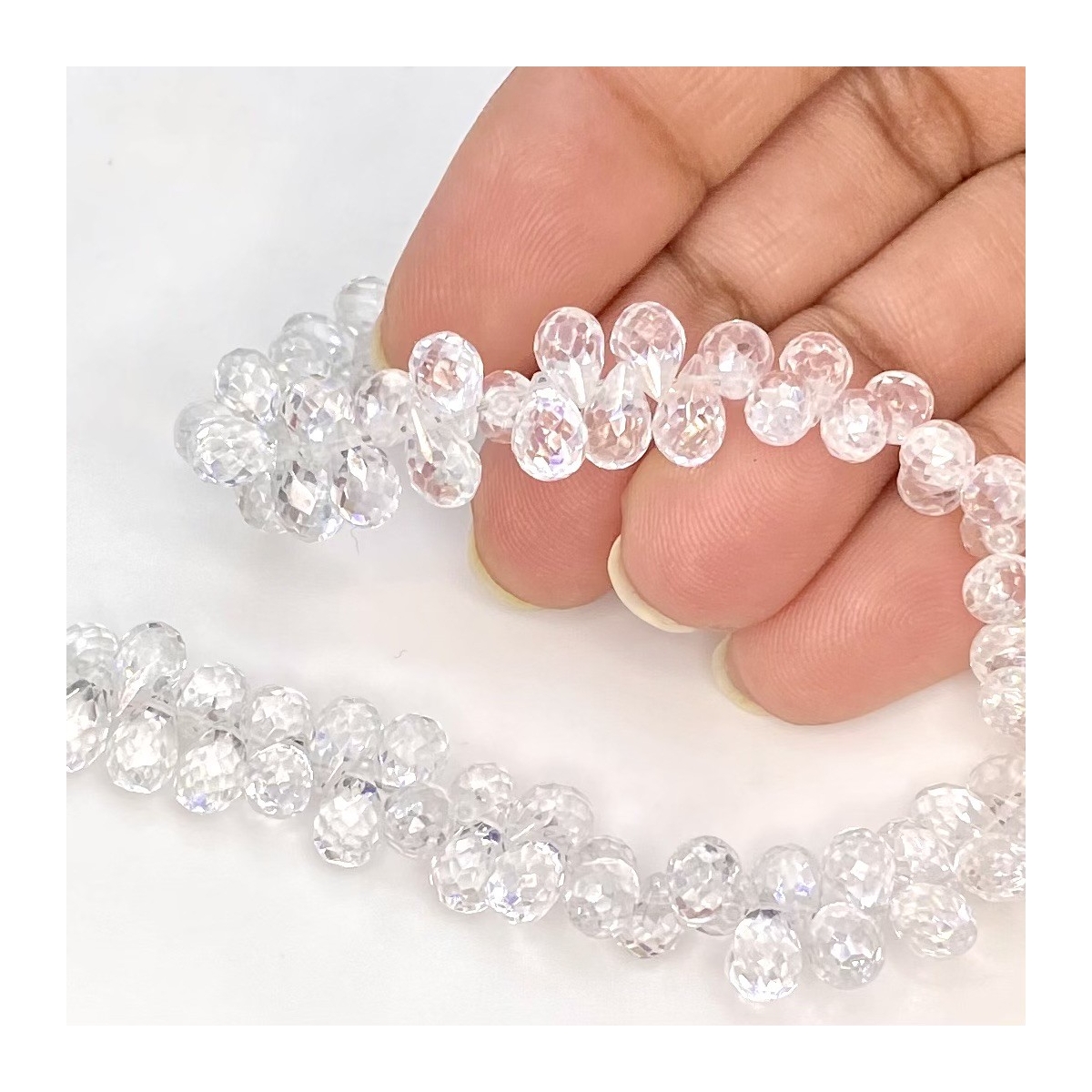 Buy This "AAA" Grade Side Drilled 6.5-7.5mm Briolette Drop Shape Natural White Topaz (Un-Treated) Gemstone Beads Strand. You Will Receive Approximately 90 Beads on 1 Strand of 8.5 Inch. With a Total Weight of 167 Cts.. This White Topaz Stone is Originated From Brazil and Masterfully Handcrafted by The Experienced Artisans of Jaipur (India).