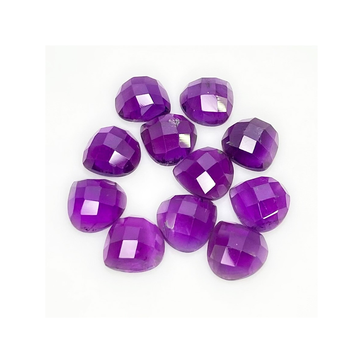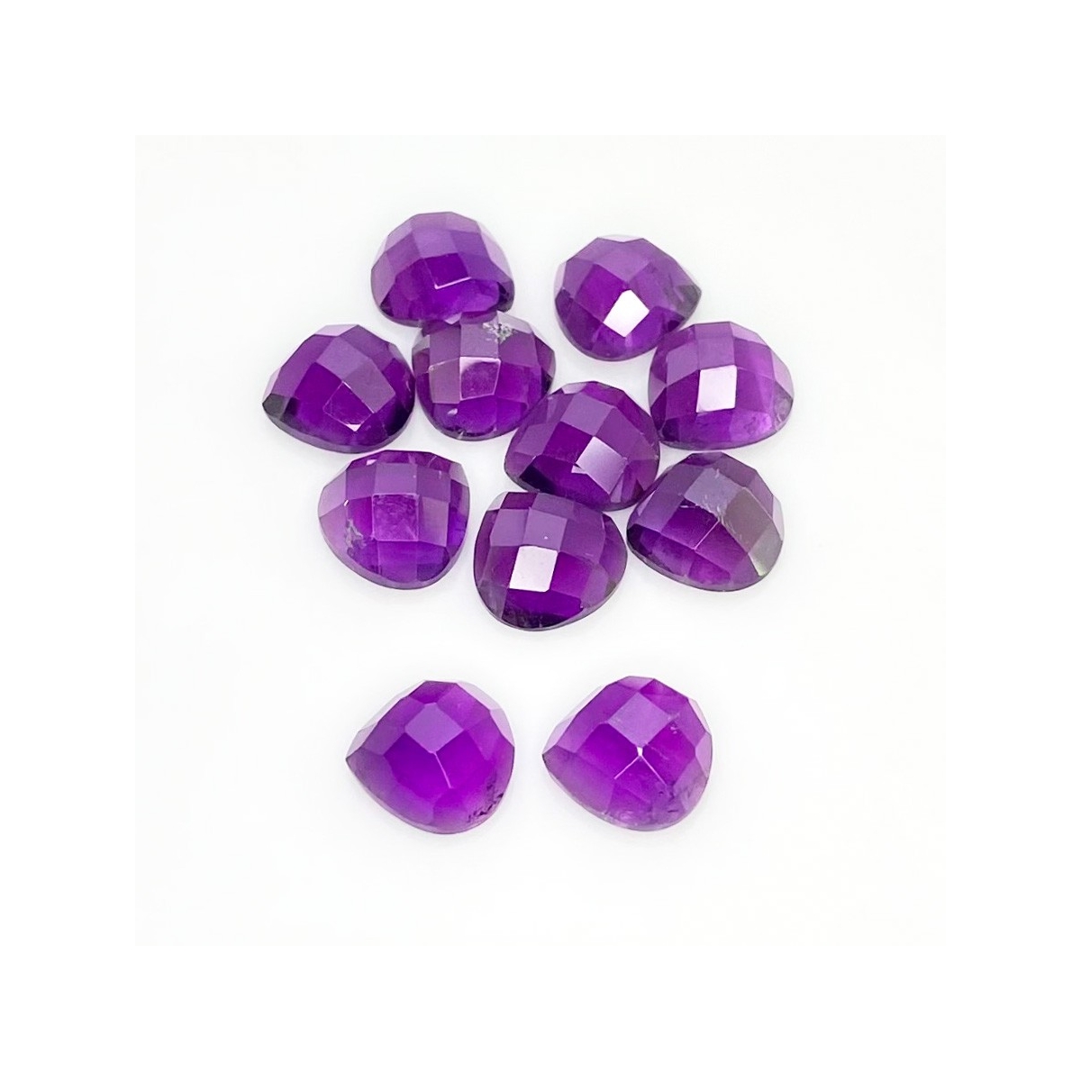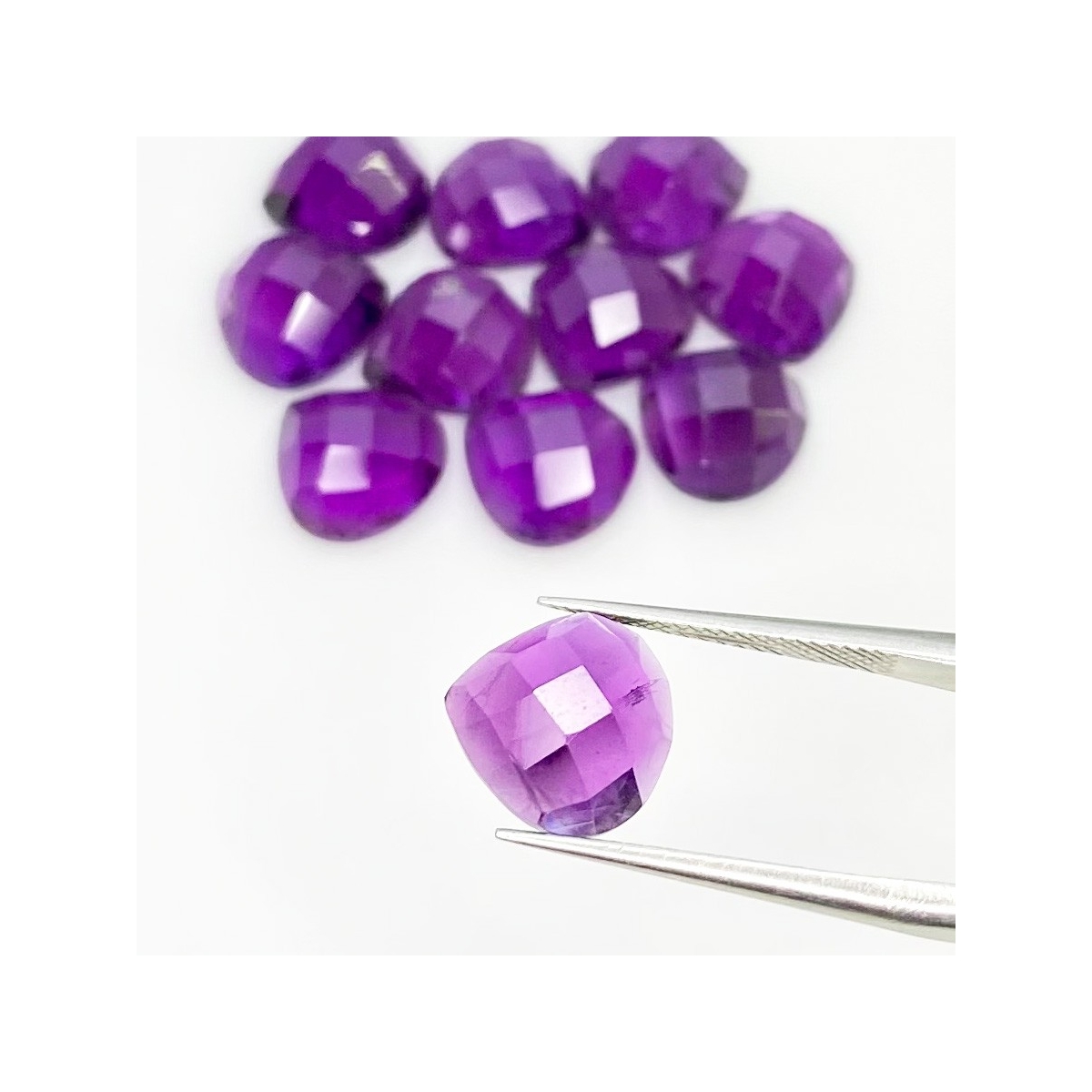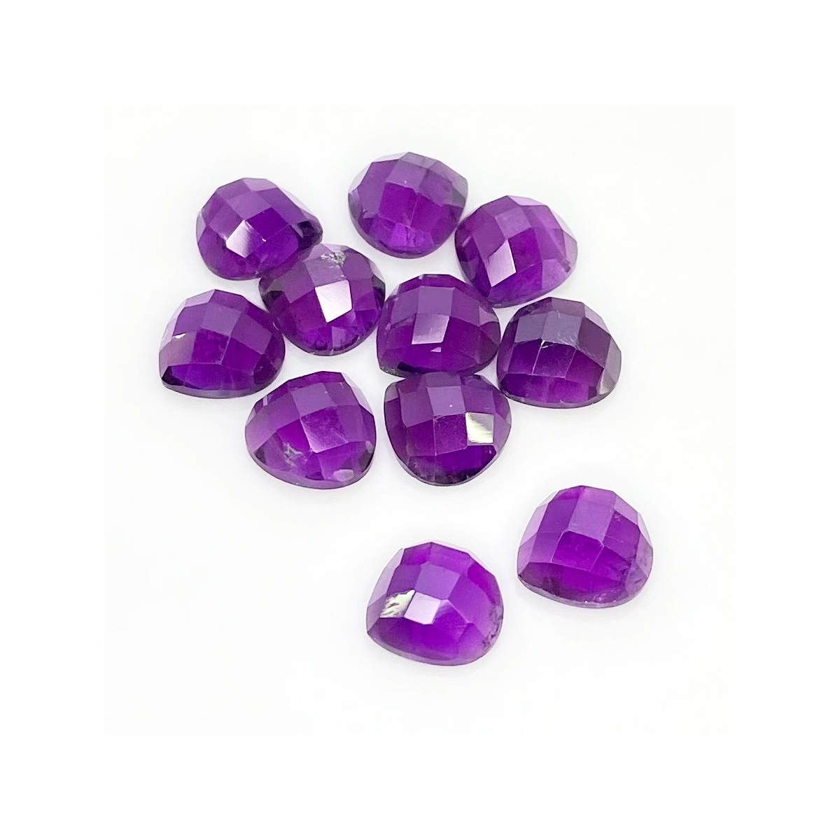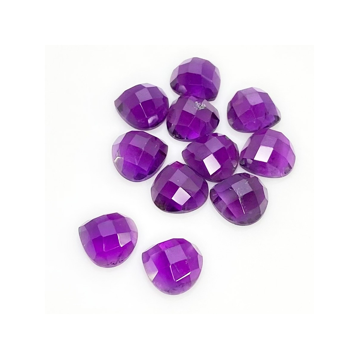 Buy This "AA" Grade 10mm Checkerboard Heart Shape Natural African Amethyst (Un-Treated) Cabochons Parcel. You Will Receive 11 Pcs. With a Total Weight of 33.25 Carat. This African Amethyst Stone is Originated From Africa and Masterfully Handcrafted by The Experienced Artisans of Jaipur (India).