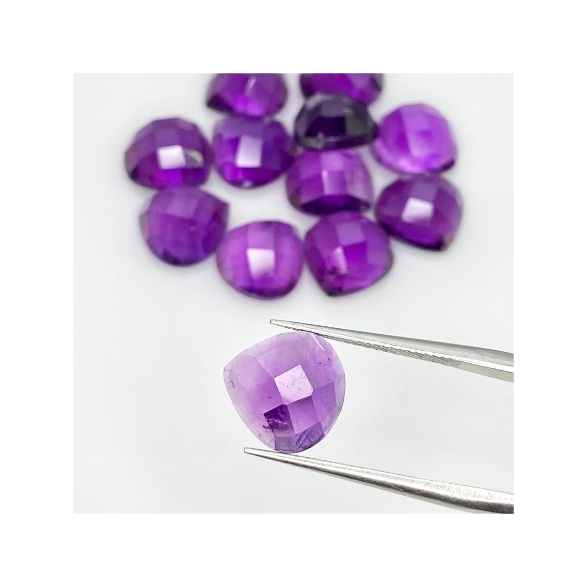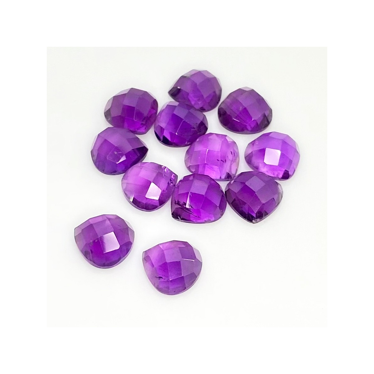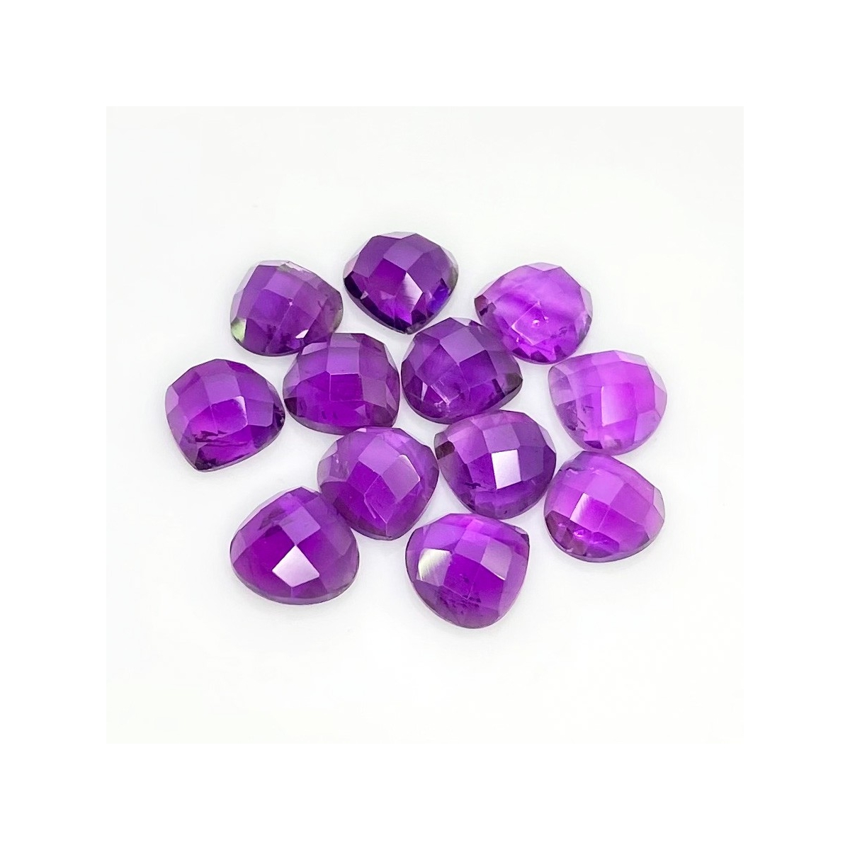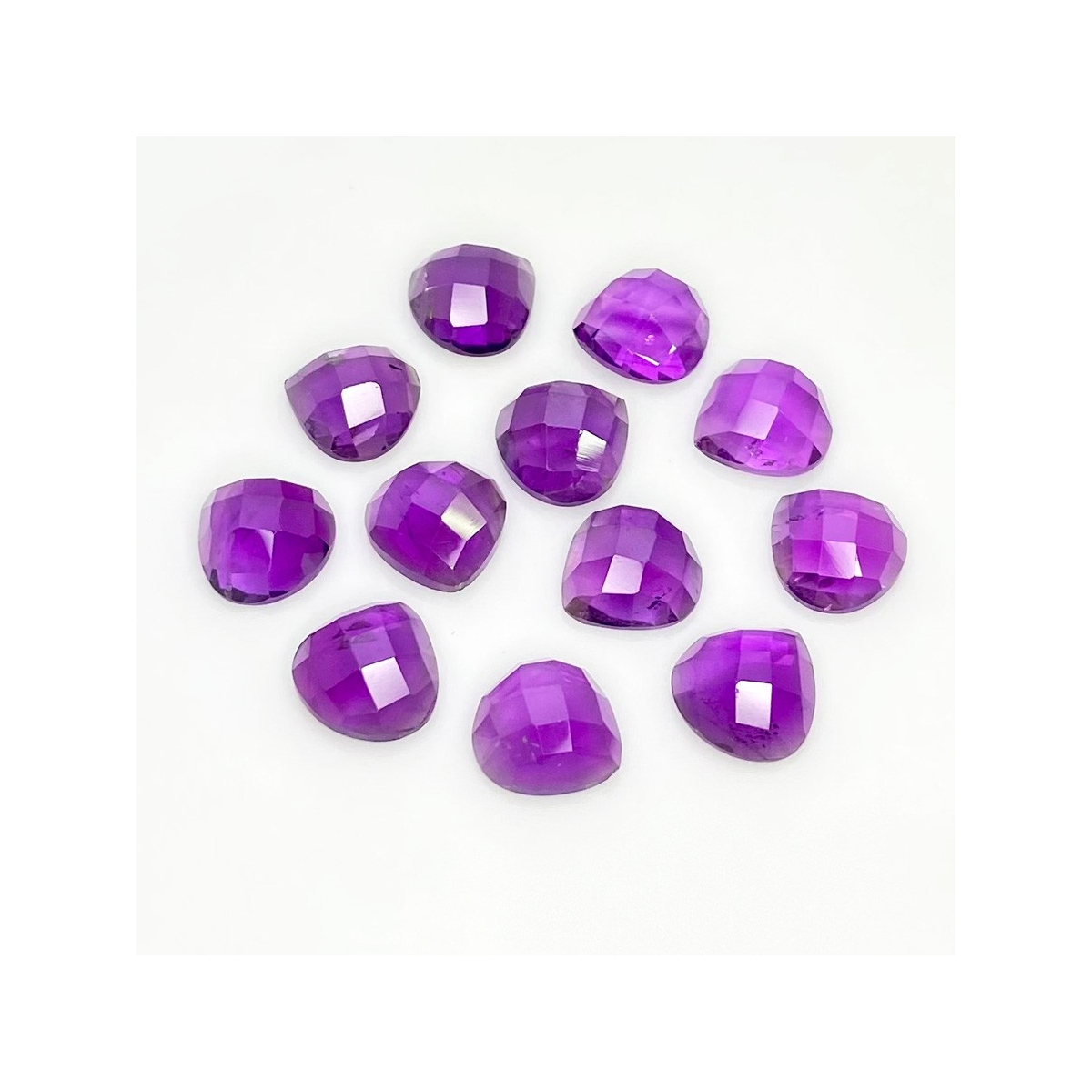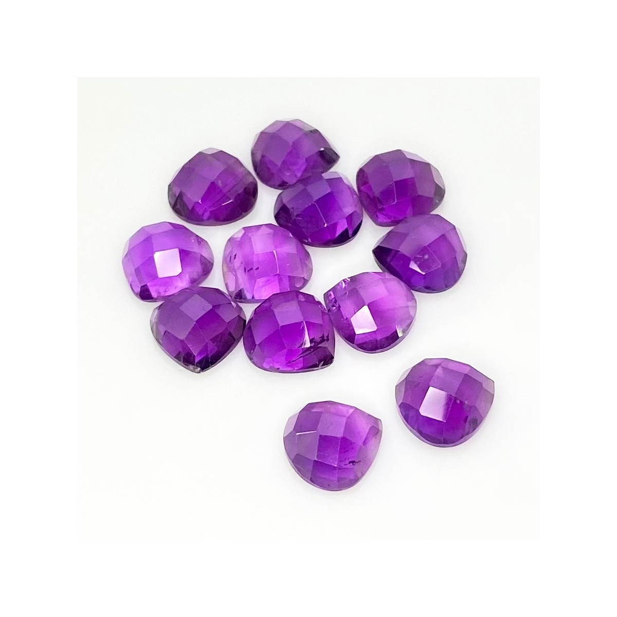 Buy This "AA" Grade 10mm Checkerboard Heart Shape Natural African Amethyst (Un-Treated) Cabochons Parcel. You Will Receive 12 Pcs. With a Total Weight of 35.80 Carat. This African Amethyst Stone is Originated From Africa and Masterfully Handcrafted by The Experienced Artisans of Jaipur (India).