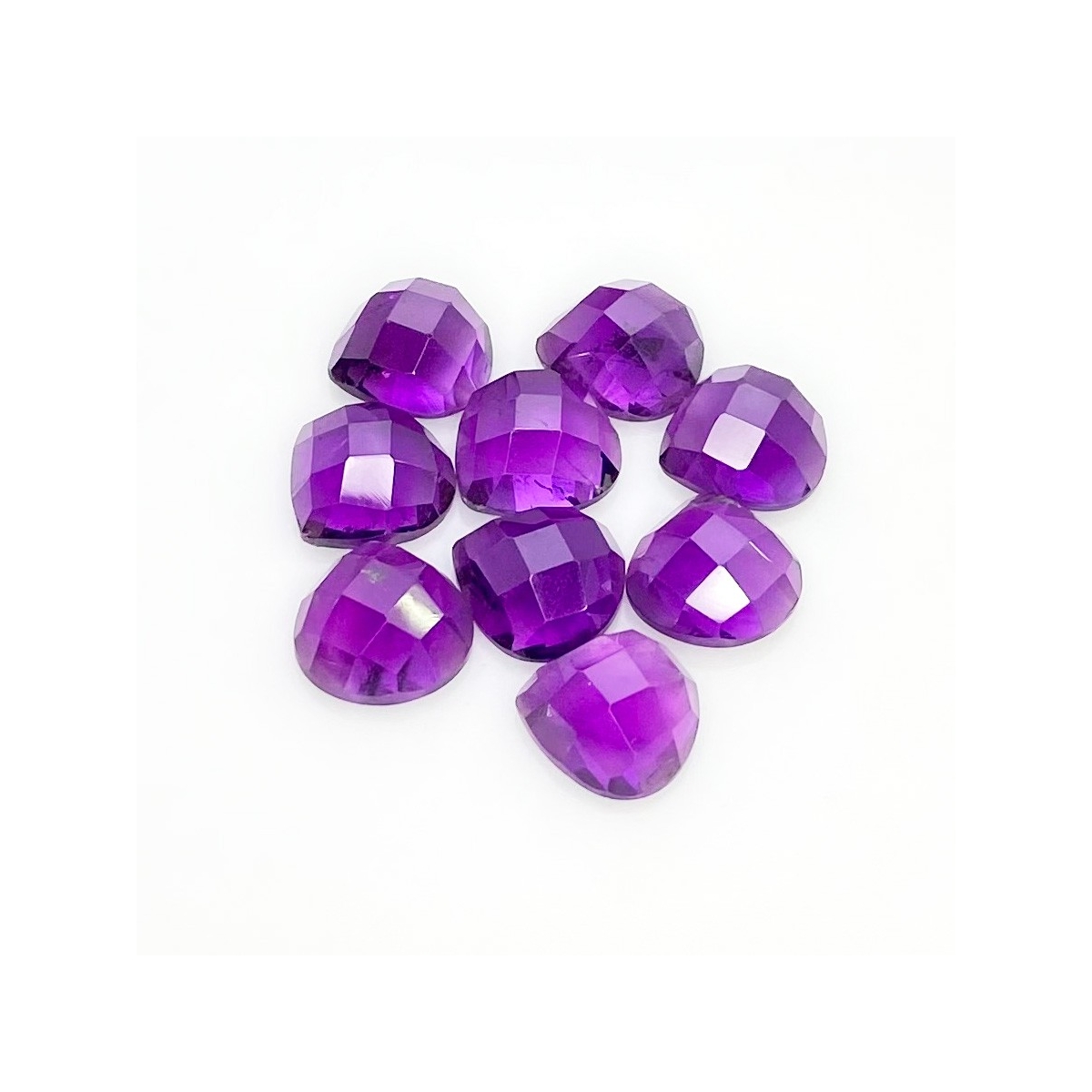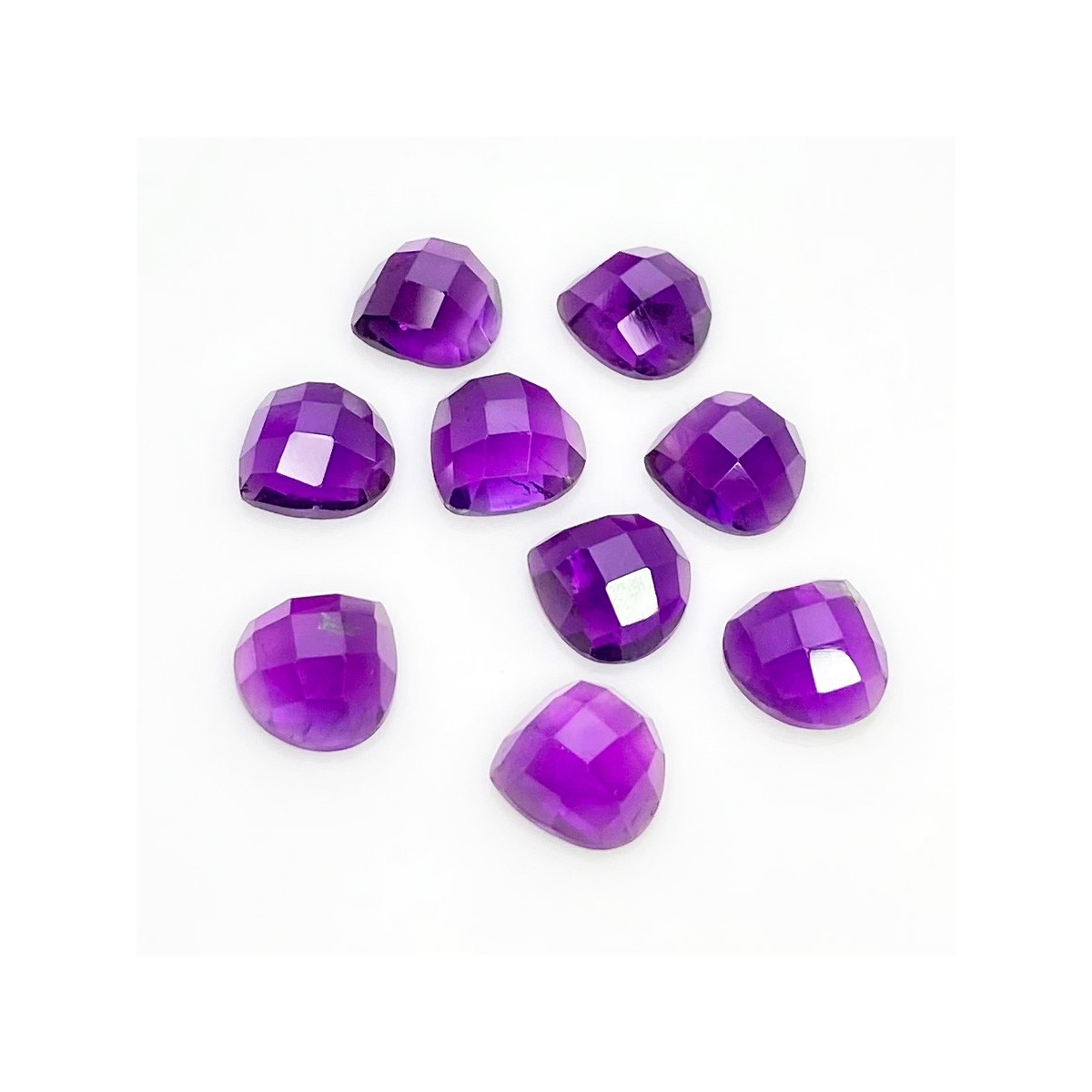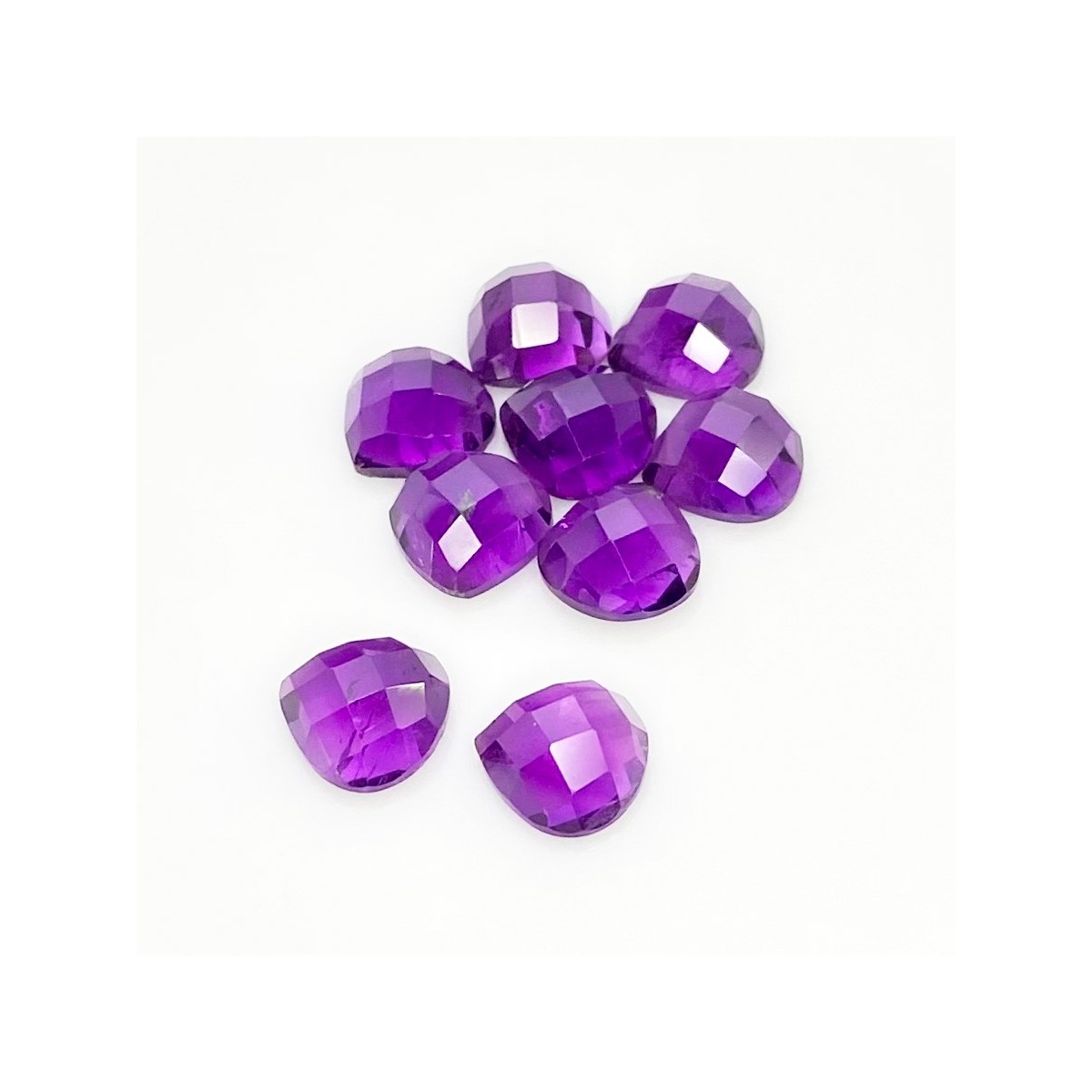 Buy This "AA" Grade 10mm Checkerboard Heart Shape Natural African Amethyst (Un-Treated) Cabochons Parcel. You Will Receive 9 Pcs. With a Total Weight of 26.80 Carat. This African Amethyst Stone is Originated From Africa and Masterfully Handcrafted by The Experienced Artisans of Jaipur (India).