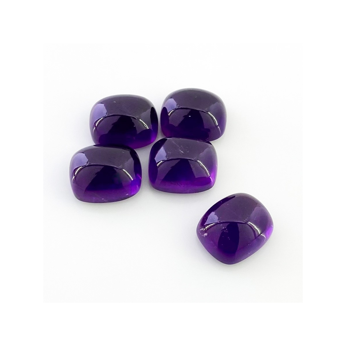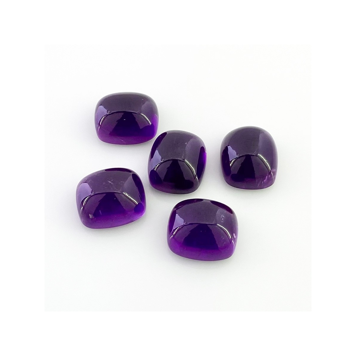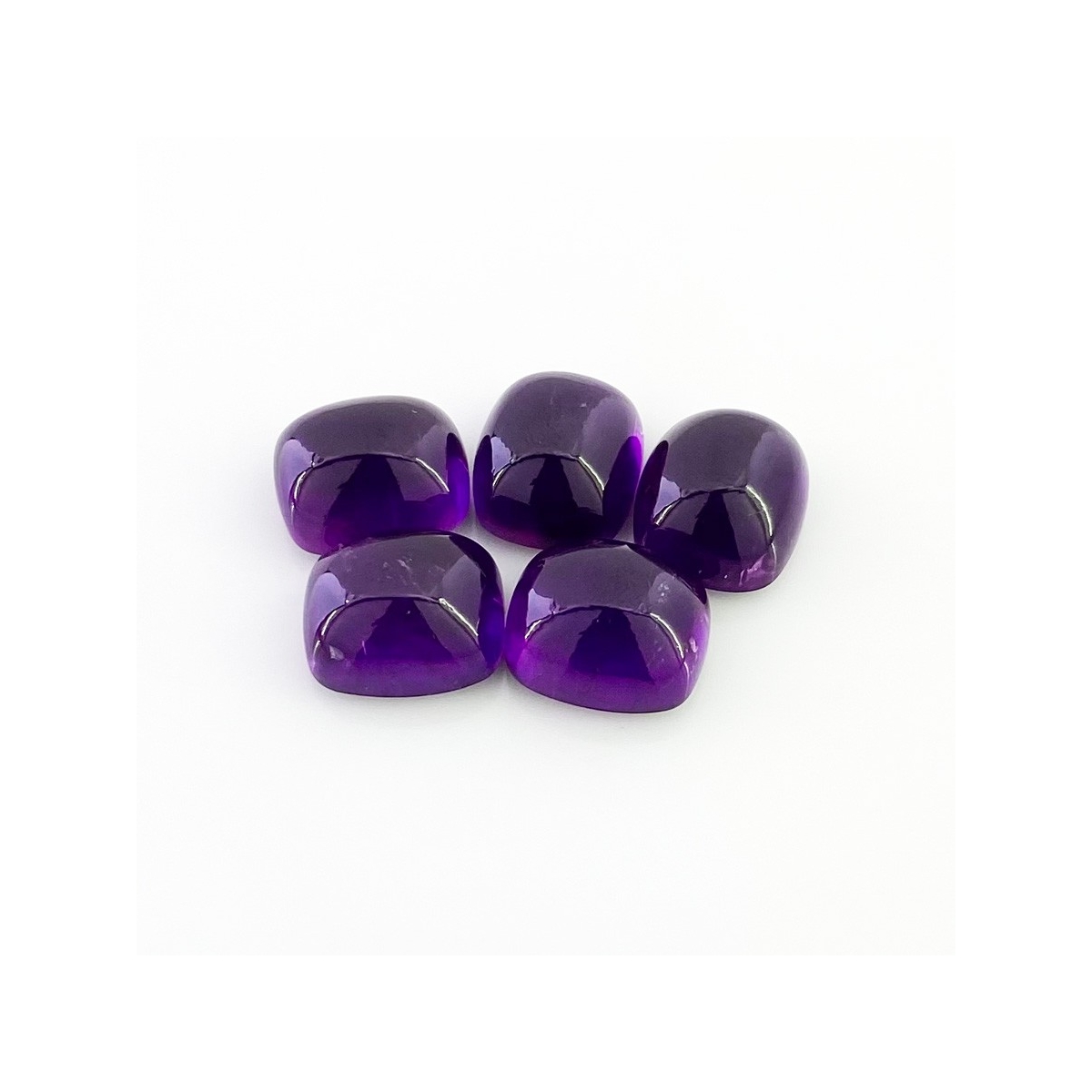 Buy This "A" Grade 14x12mm Smooth Cushion Shape Natural African Amethyst (Un-Treated) Cabochons Parcel. You Will Receive 5 Pcs. With a Total Weight of 53.75 Carat. This African Amethyst Stone is Originated From Africa and Masterfully Handcrafted by The Experienced Artisans of Jaipur (India).