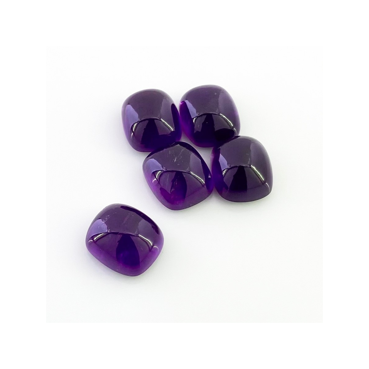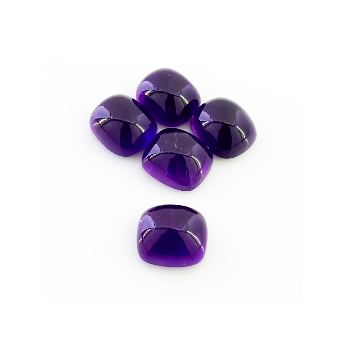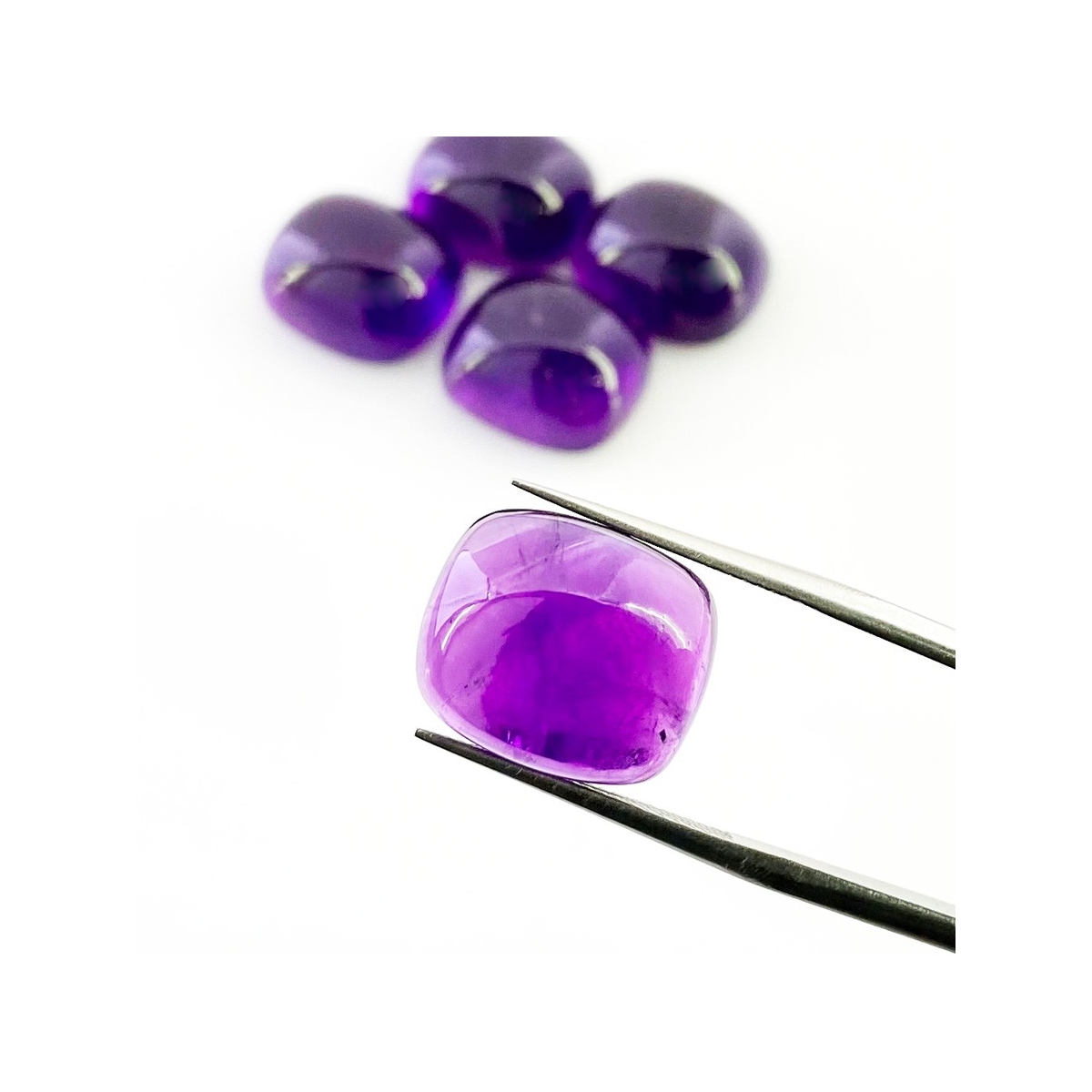 Buy This "A" Grade 14x12mm Smooth Cushion Shape Natural African Amethyst (Un-Treated) Cabochons Parcel. You Will Receive 5 Pcs. With a Total Weight of 53.75 Carat. This African Amethyst Stone is Originated From Africa and Masterfully Handcrafted by The Experienced Artisans of Jaipur (India).