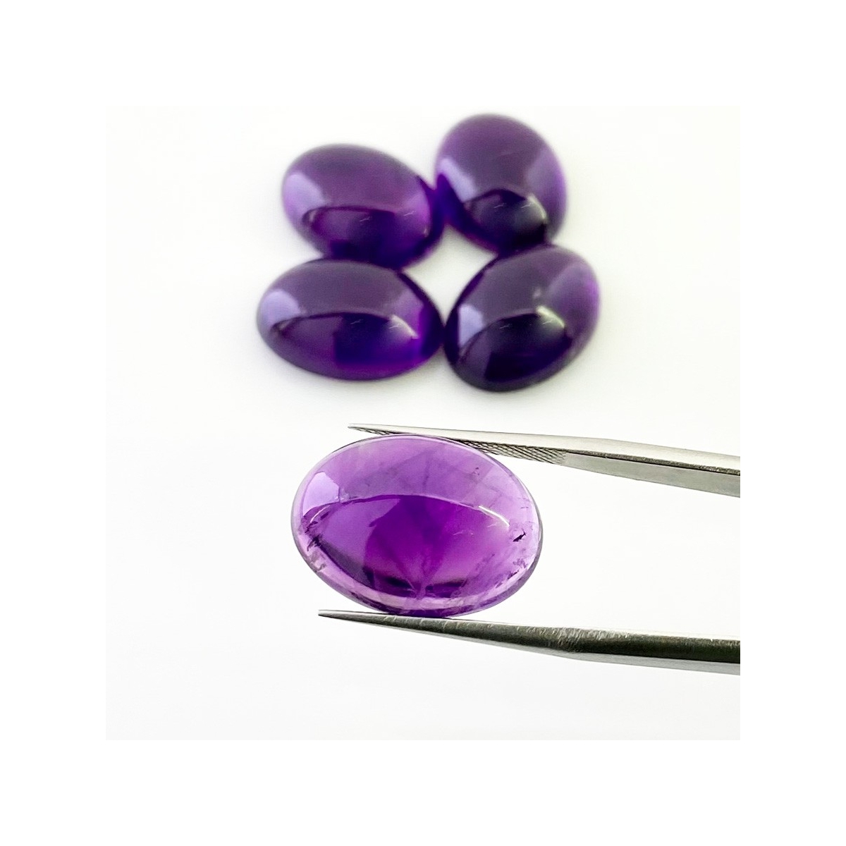 Buy This "A" Grade 18x13mm Smooth Oval Shape Natural African Amethyst (Un-Treated) Cabochons Parcel. You Will Receive 5 Pcs. With a Total Weight of 56.20 Carat. This African Amethyst Stone is Originated From Africa and Masterfully Handcrafted by The Experienced Artisans of Jaipur (India).