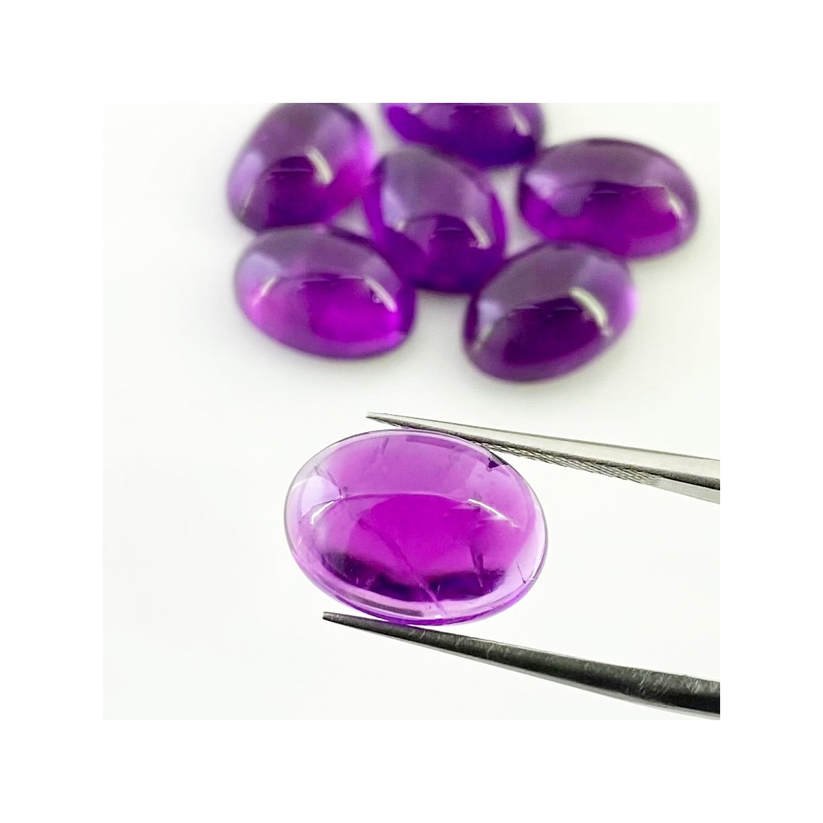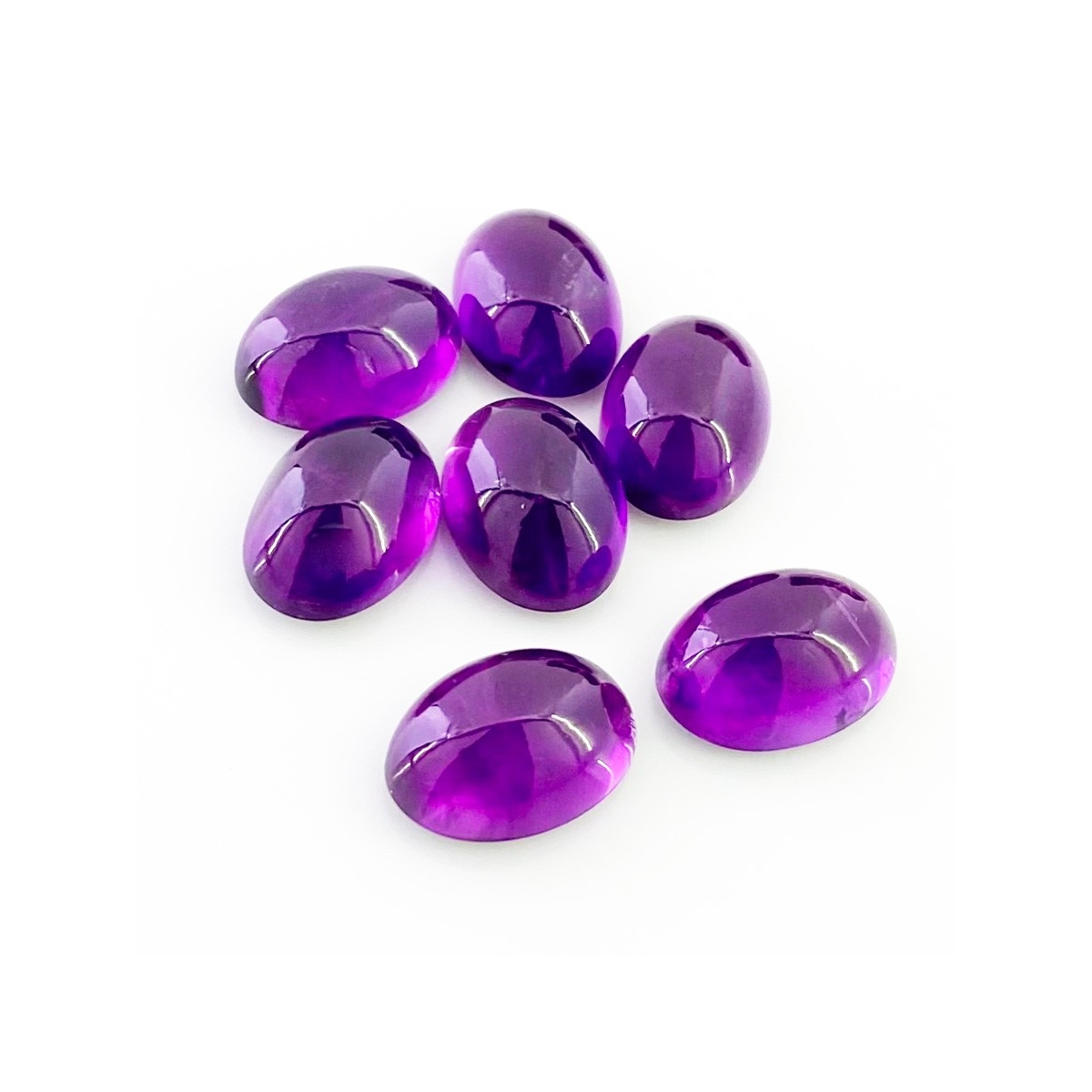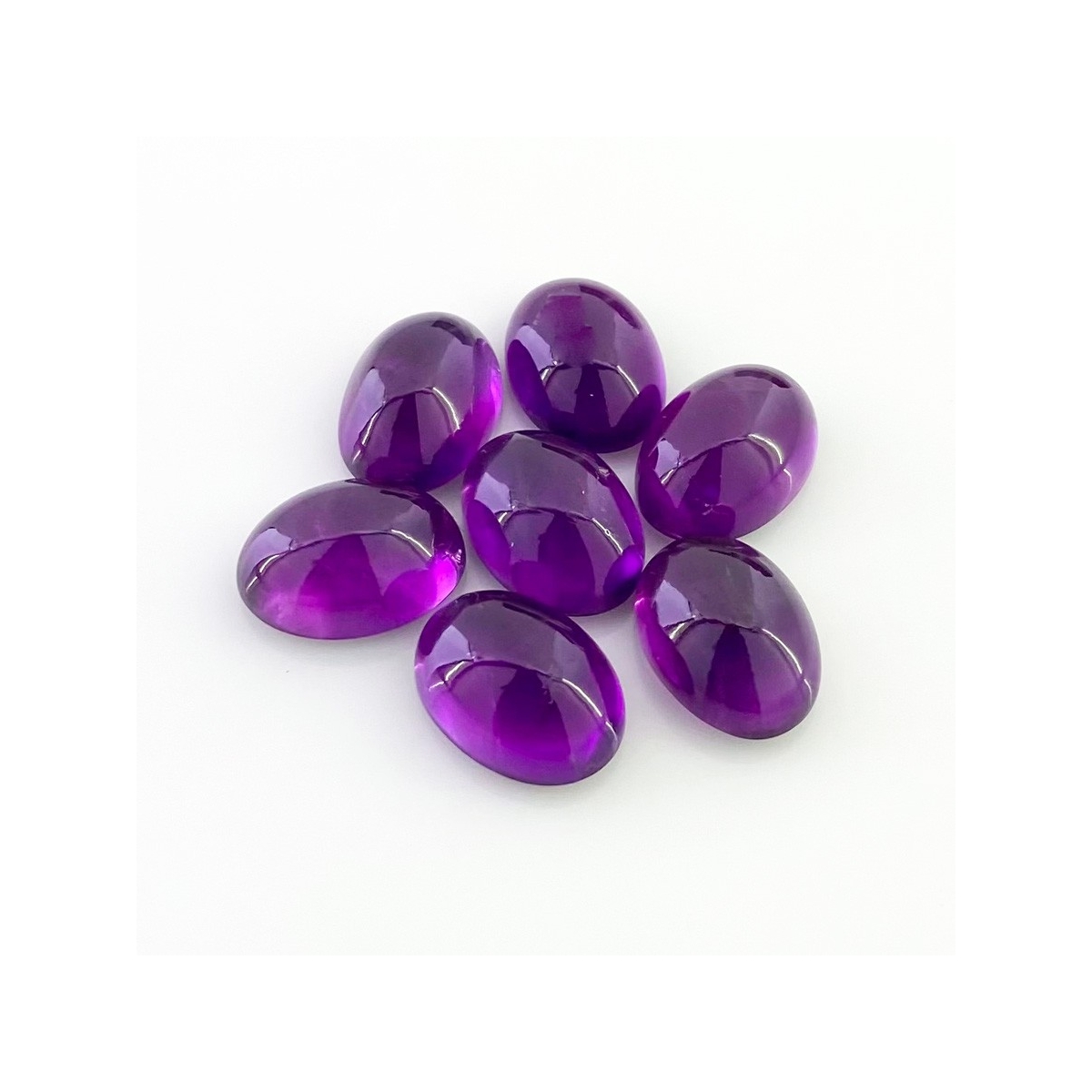 Buy This "A" Grade 14x10mm Smooth Oval Shape Natural African Amethyst (Un-Treated) Cabochons Parcel. You Will Receive 7 Pcs. With a Total Weight of 44.35 Carat. This African Amethyst Stone is Originated From Africa and Masterfully Handcrafted by The Experienced Artisans of Jaipur (India).