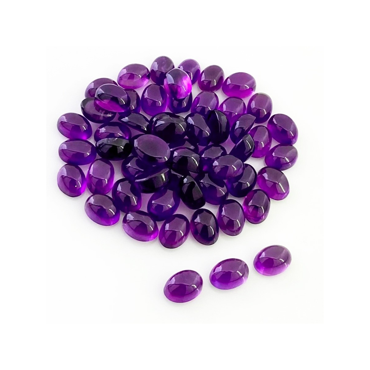 Buy This "A" Grade 7x5mm Smooth Oval Shape Natural African Amethyst (Un-Treated) Cabochons Parcel. You Will Receive 55 Pcs. With a Total Weight of 53.65 Carat. This African Amethyst Stone is Originated From Africa and Masterfully Handcrafted by The Experienced Artisans of Jaipur (India).