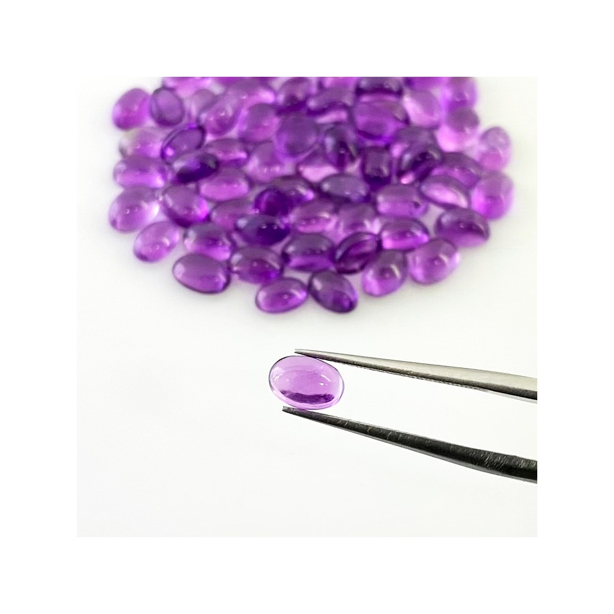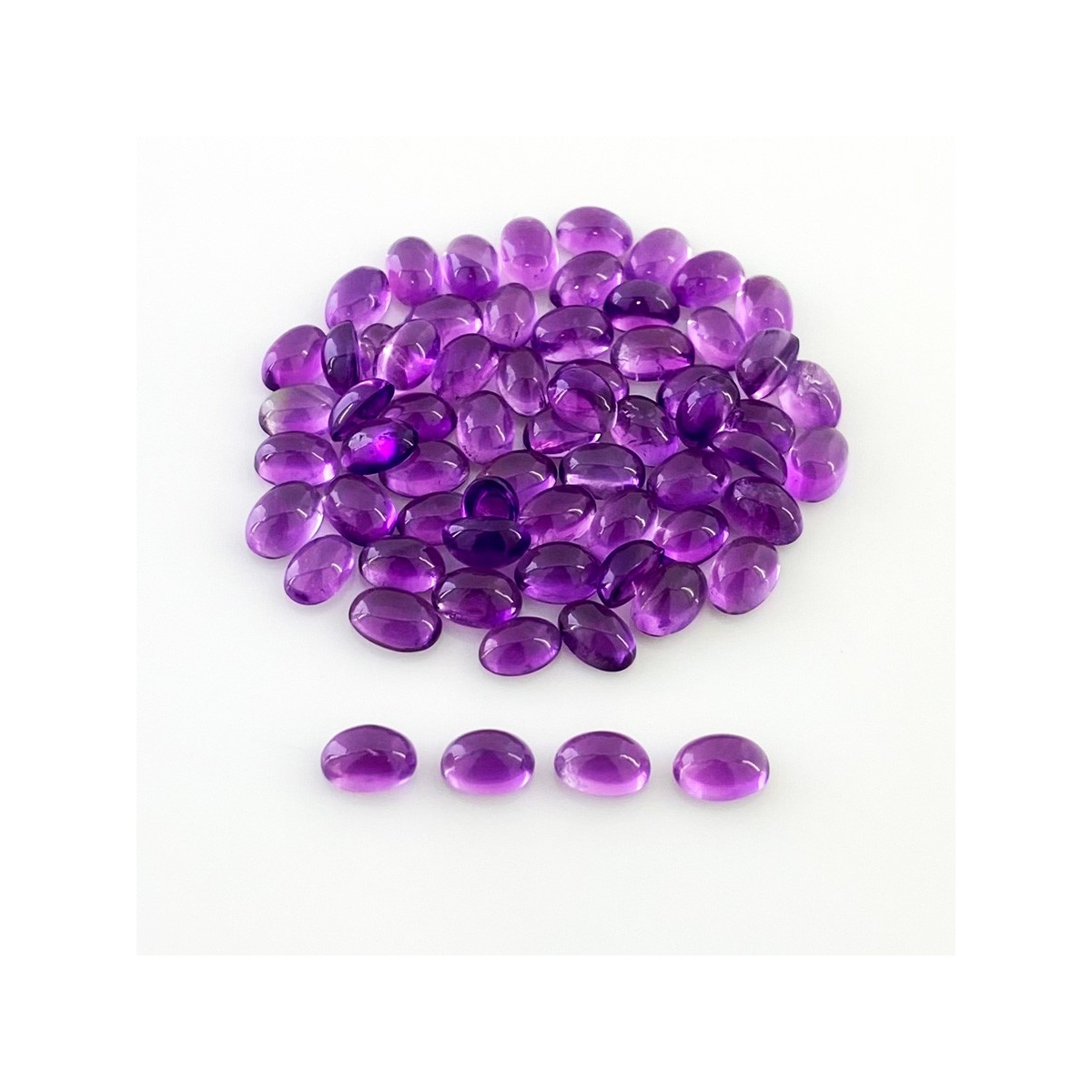 Buy This "A" Grade 6x4mm Smooth Oval Shape Natural African Amethyst (Un-Treated) Cabochons Parcel. You Will Receive 65 Pcs. With a Total Weight of 34.25 Carat. This African Amethyst Stone is Originated From Africa and Masterfully Handcrafted by The Experienced Artisans of Jaipur (India).
