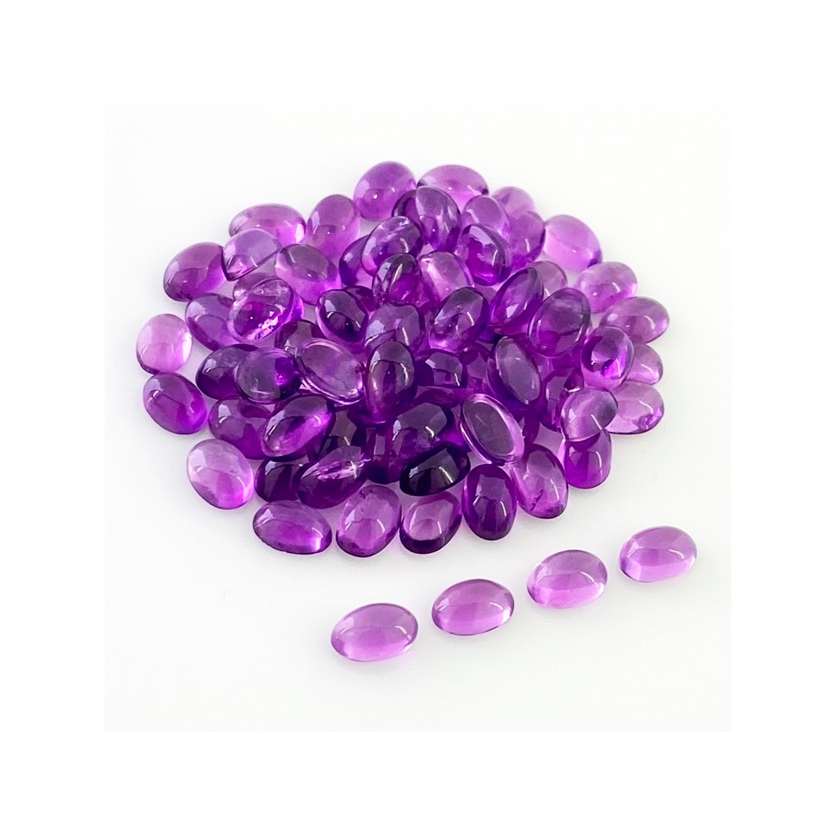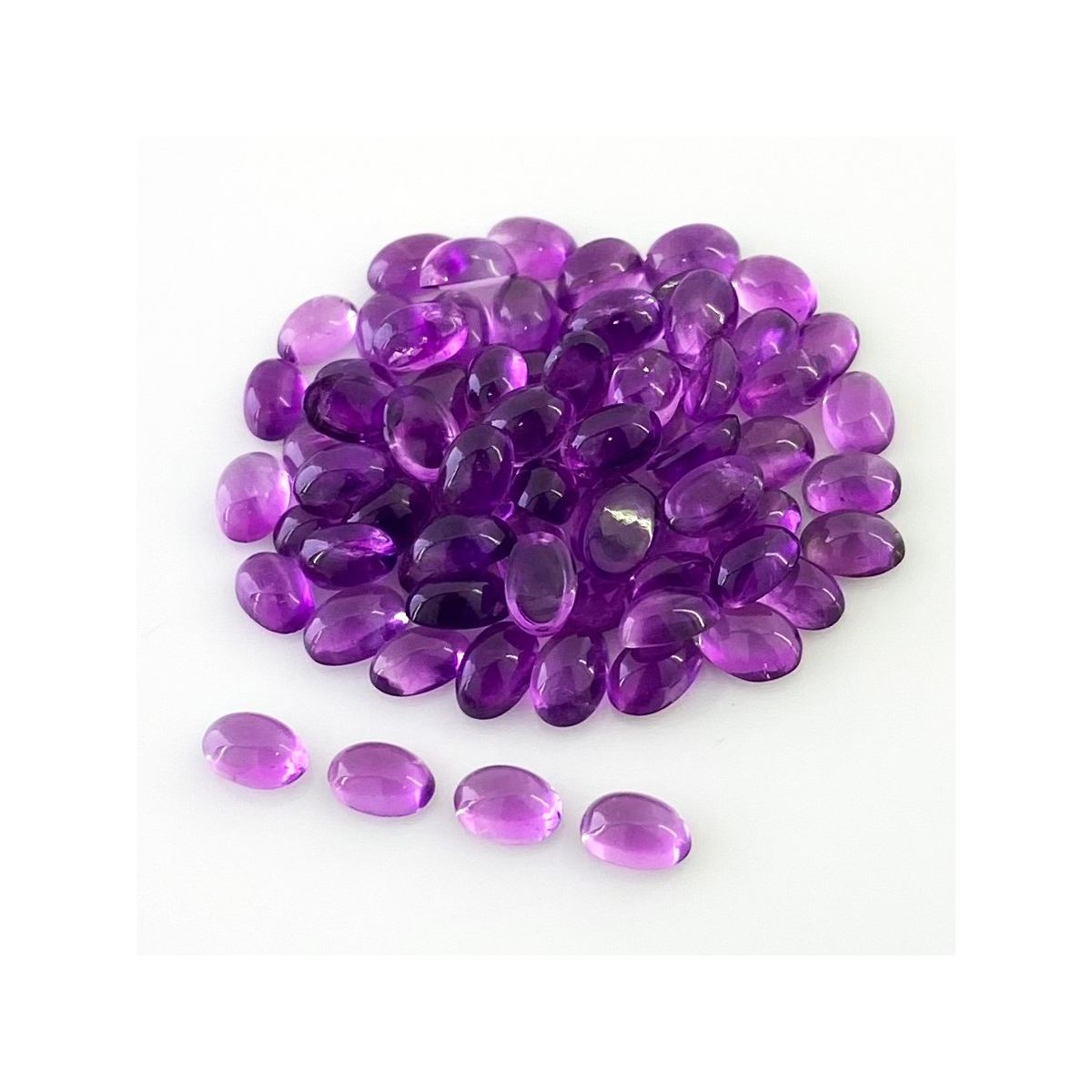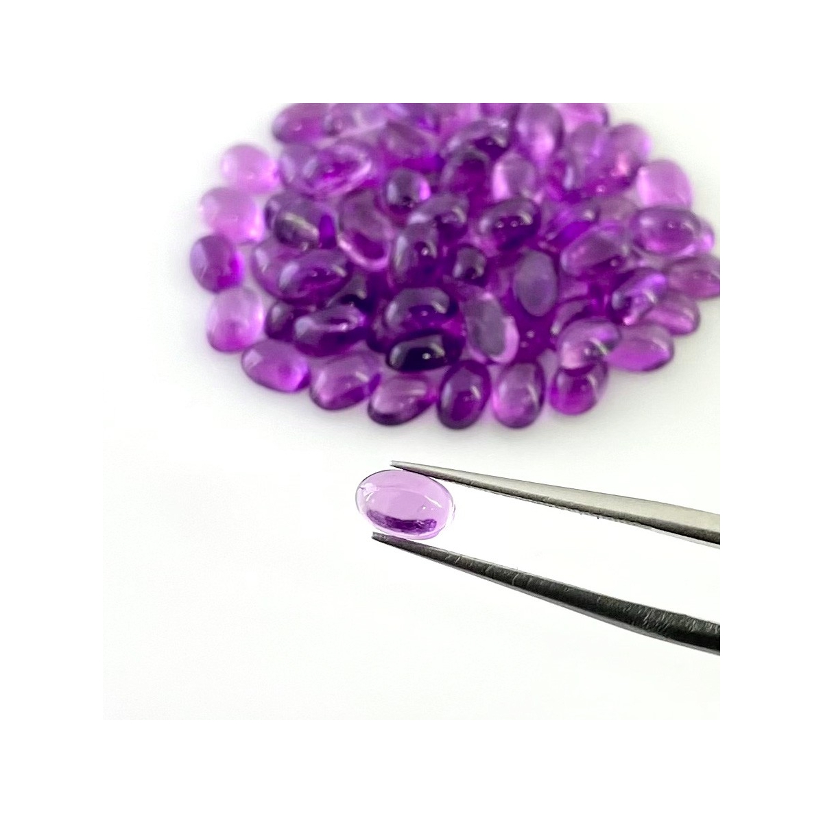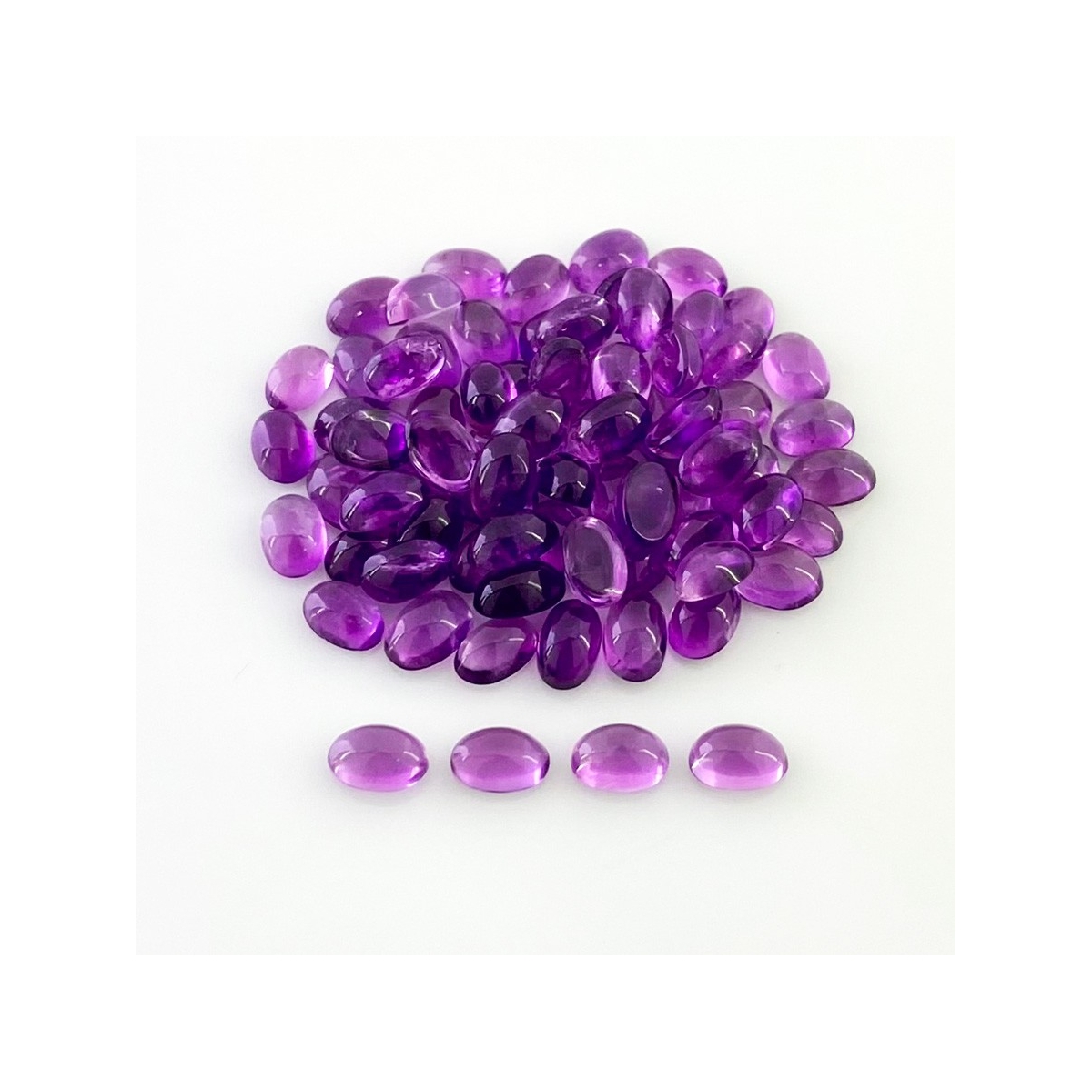 Buy This "A" Grade 6x4mm Smooth Oval Shape Natural African Amethyst (Un-Treated) Cabochons Parcel. You Will Receive 75 Pcs. With a Total Weight of 37.90 Carat. This African Amethyst Stone is Originated From Africa and Masterfully Handcrafted by The Experienced Artisans of Jaipur (India).