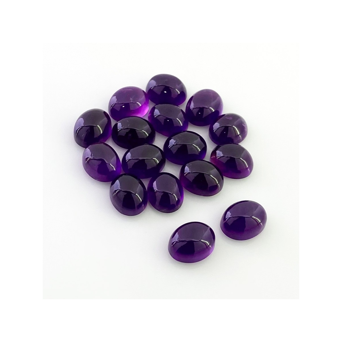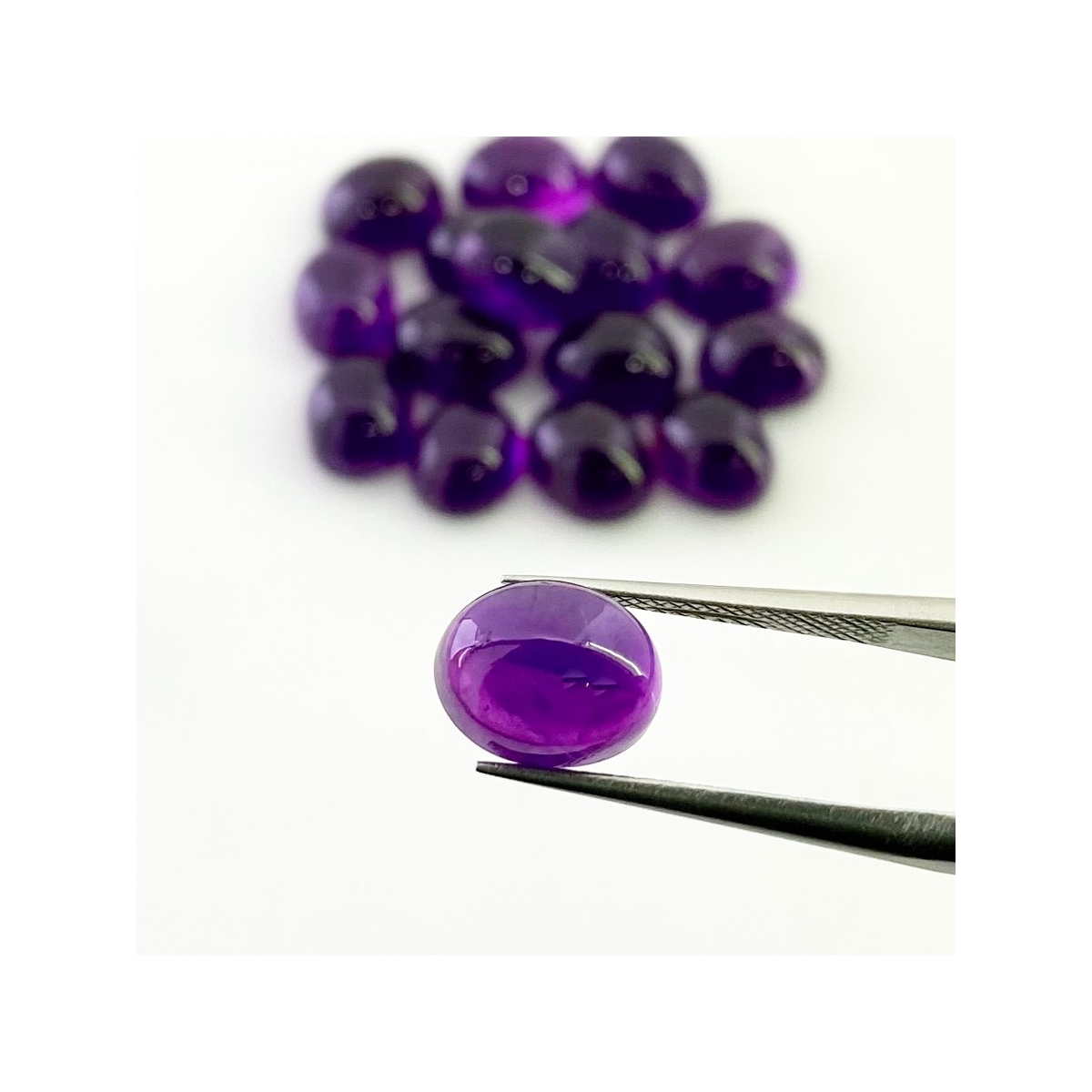 Buy This "A" Grade 9x7mm Smooth Oval Shape Natural African Amethyst (Un-Treated) Cabochons Parcel. You Will Receive 16 Pcs. With a Total Weight of 35.75 Carat. This African Amethyst Stone is Originated From Africa and Masterfully Handcrafted by The Experienced Artisans of Jaipur (India).