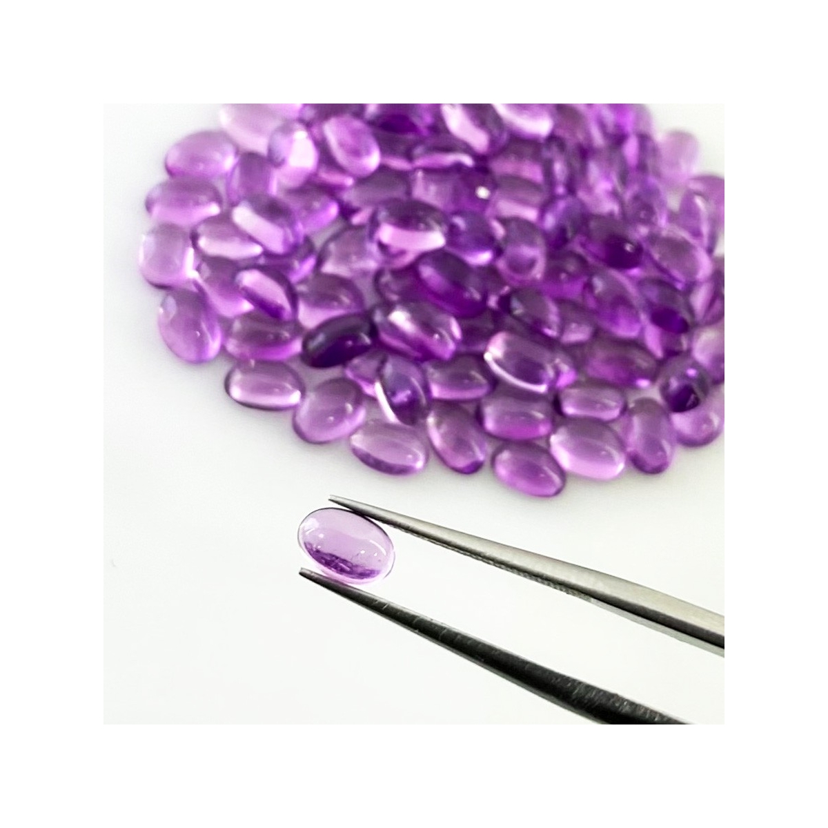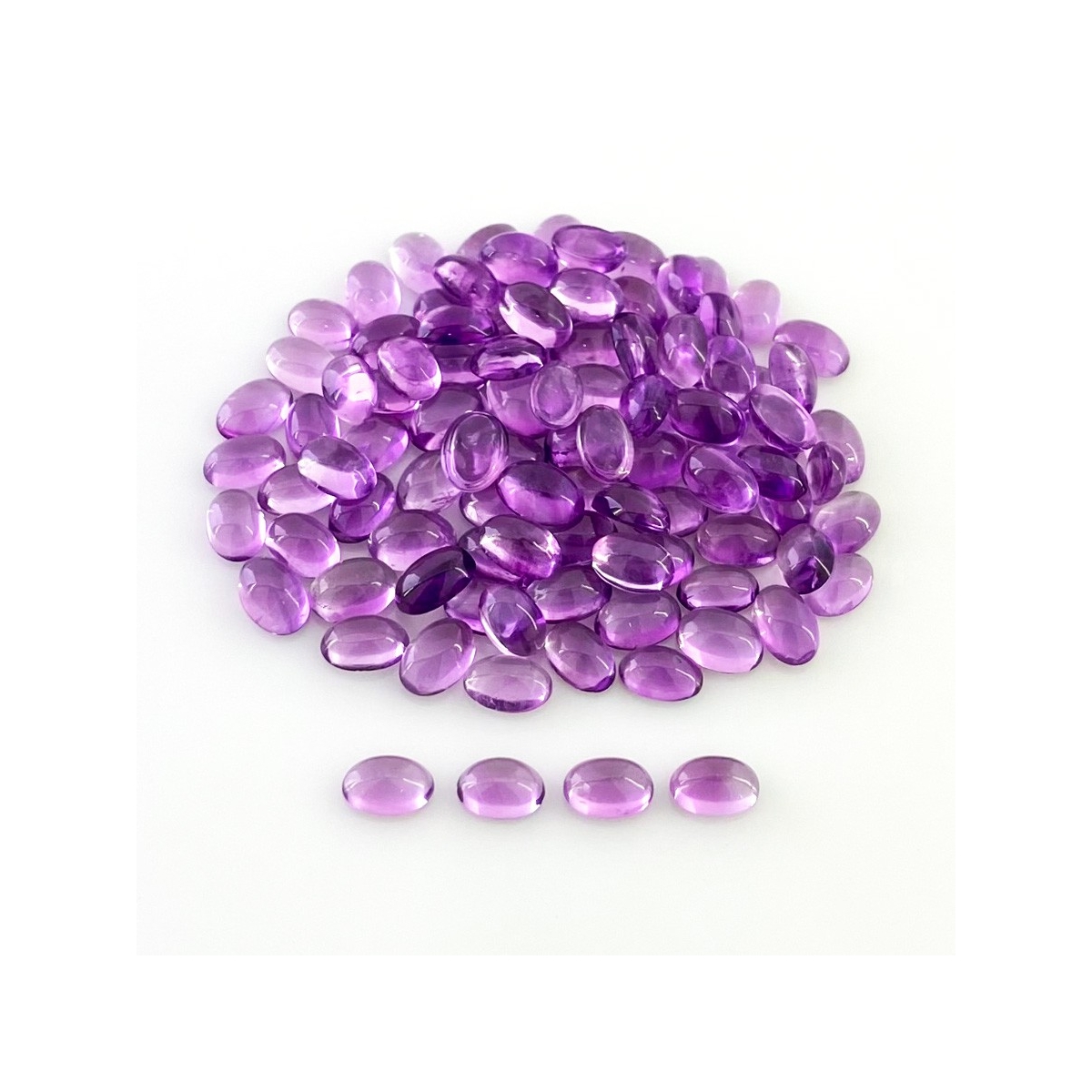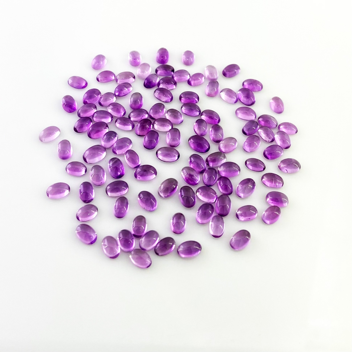 Buy This "A" Grade 6x4mm Smooth Oval Shape Natural African Amethyst (Un-Treated) Cabochons Parcel. You Will Receive 100 Pcs. With a Total Weight of 46.10 Carat. This African Amethyst Stone is Originated From Africa and Masterfully Handcrafted by The Experienced Artisans of Jaipur (India).