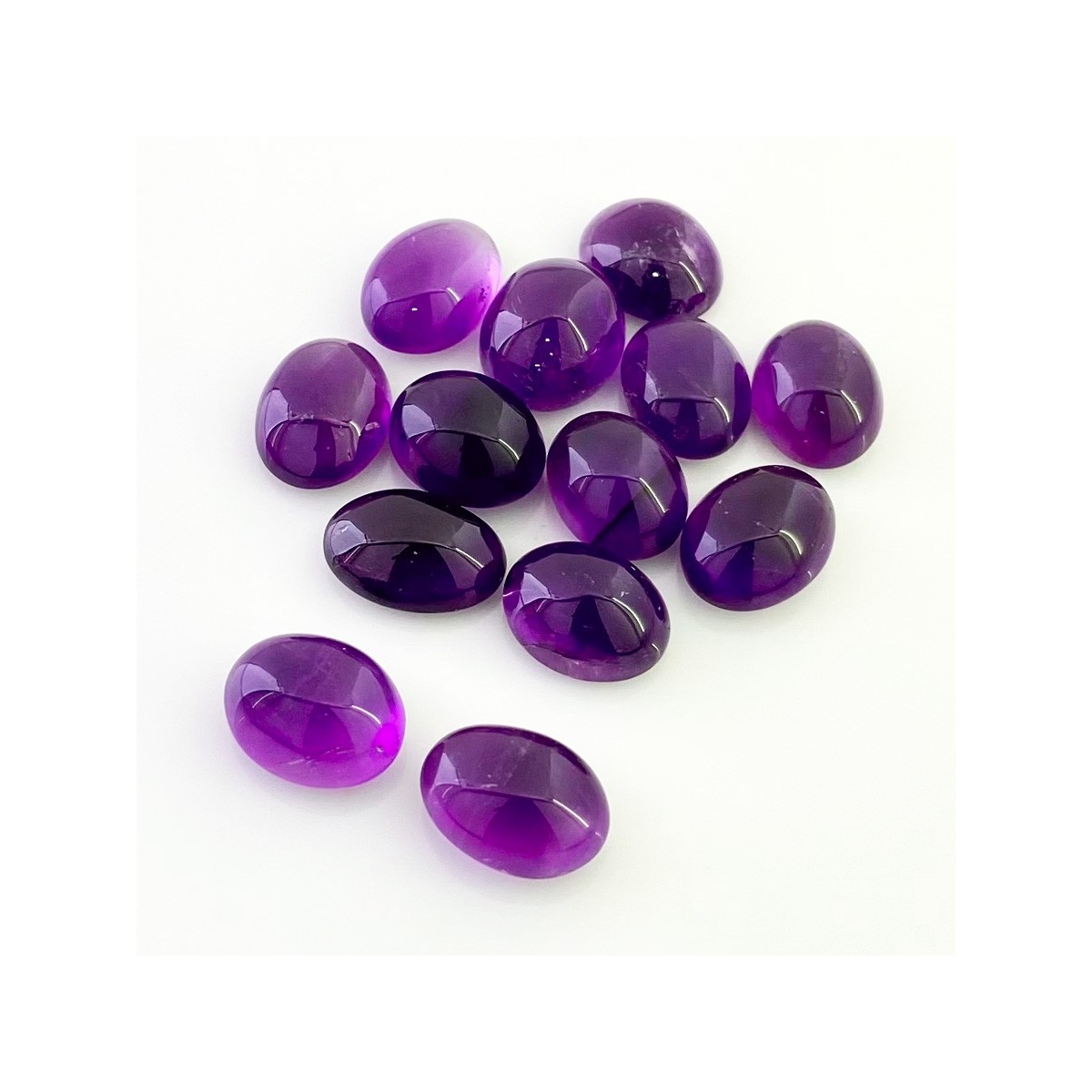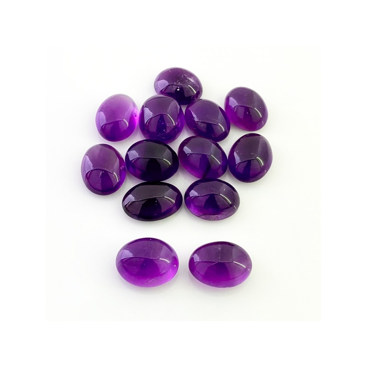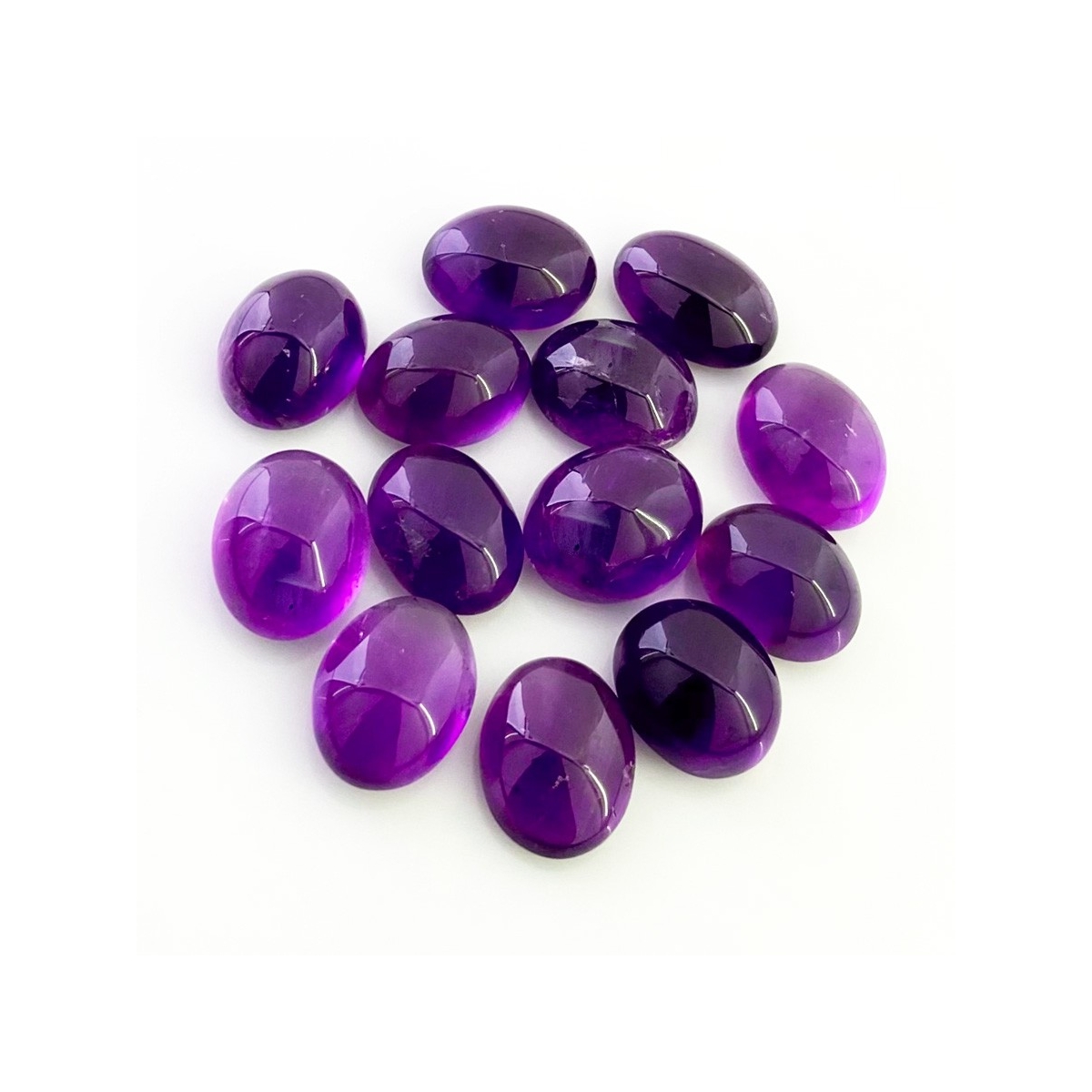 Buy This "A" Grade 14x10.5-15x11mm Smooth Oval Shape Natural African Amethyst (Un-Treated) Cabochons Parcel. You Will Receive 13 Pcs. With a Total Weight of 105.45 Cts.. This African Amethyst Stone is Originated From Africa and Masterfully Handcrafted by The Experienced Artisans of Jaipur (India).