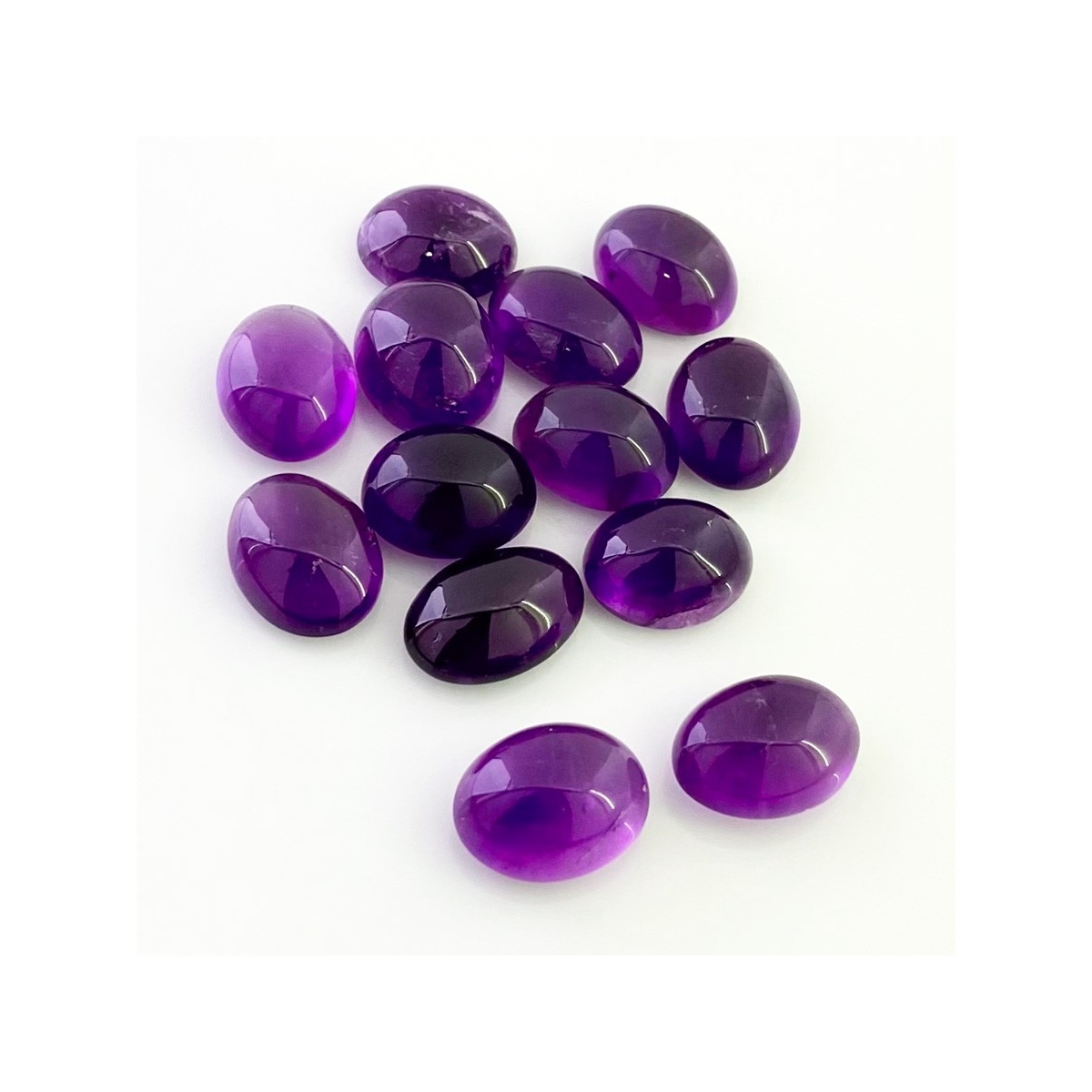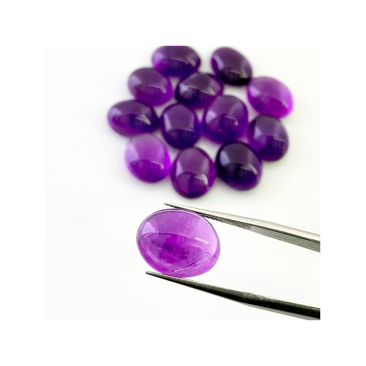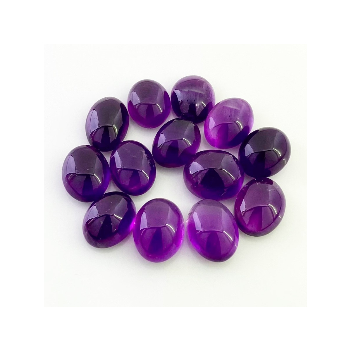 Buy This "A" Grade 14x10.5-15x11mm Smooth Oval Shape Natural African Amethyst (Un-Treated) Cabochons Parcel. You Will Receive 13 Pcs. With a Total Weight of 105.45 Cts.. This African Amethyst Stone is Originated From Africa and Masterfully Handcrafted by The Experienced Artisans of Jaipur (India).