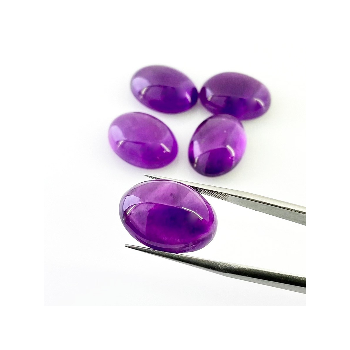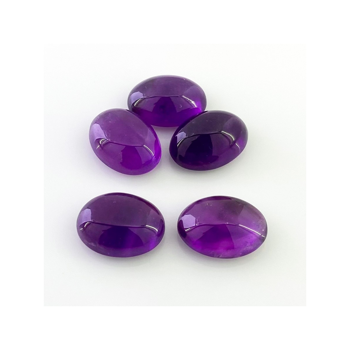 Buy This "A" Grade 18x13mm Smooth Oval Shape Natural African Amethyst (Un-Treated) Cabochons Parcel. You Will Receive 5 Pcs. With a Total Weight of 65.75 Cts.. This African Amethyst Stone is Originated From Africa and Masterfully Handcrafted by The Experienced Artisans of Jaipur (India).