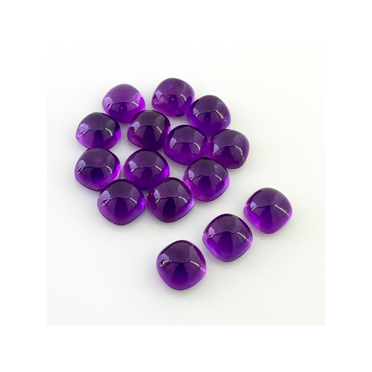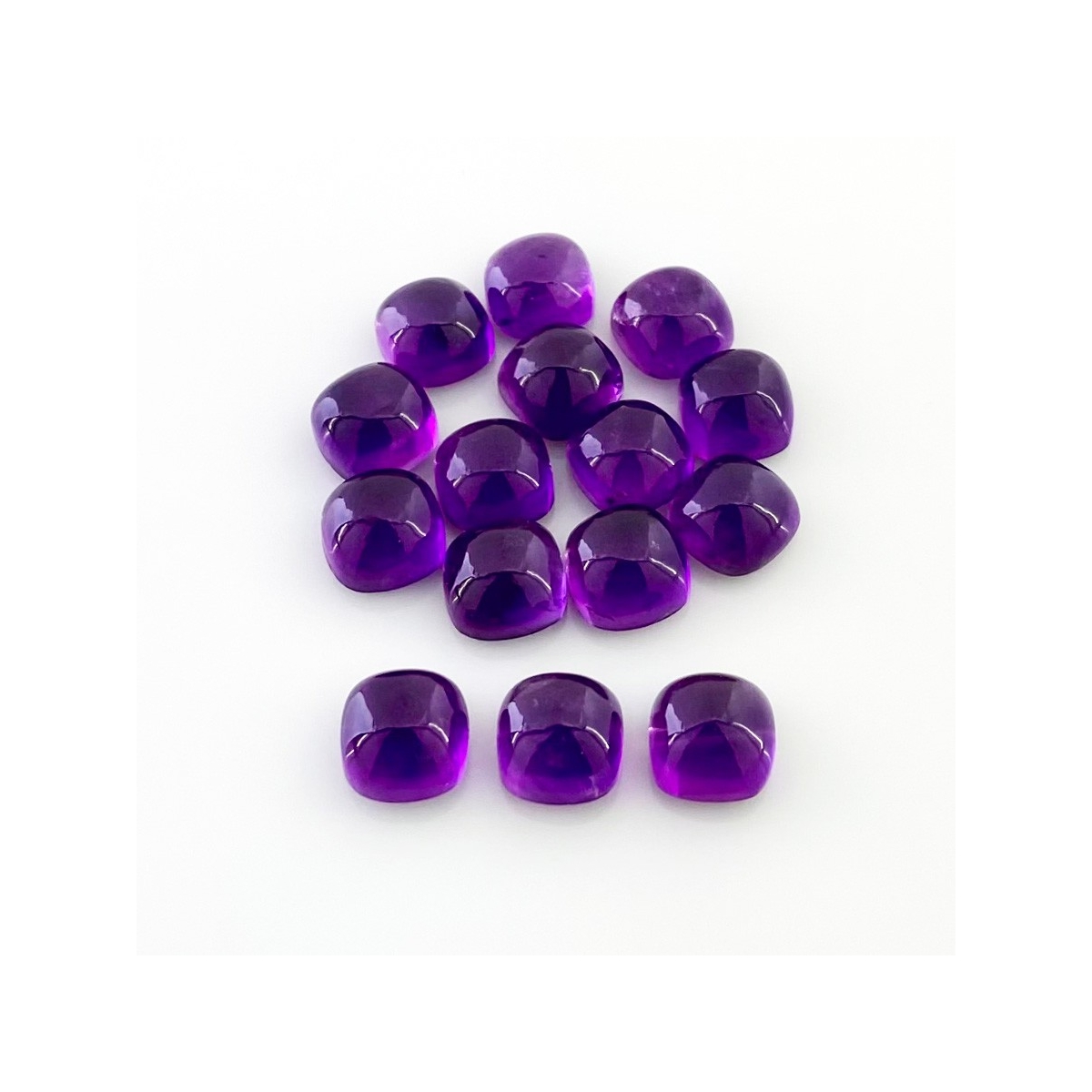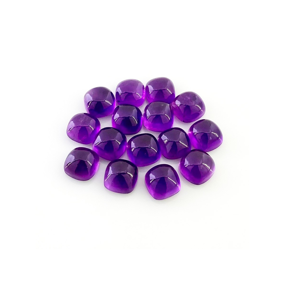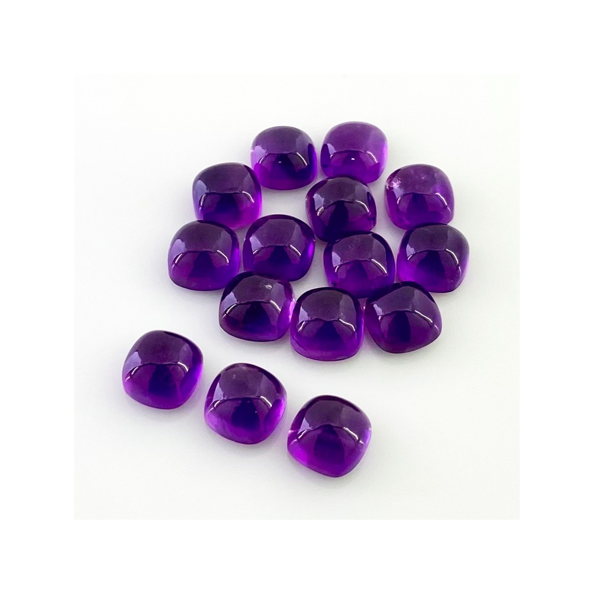 Buy This "AA" Grade 8mm Smooth Square Cushion Shape Natural African Amethyst (Un-Treated) Cabochons Parcel. You Will Receive 15 Pcs. With a Total Weight of 41.65 Carat. This African Amethyst Stone is Originated From Africa and Masterfully Handcrafted by The Experienced Artisans of Jaipur (India).
