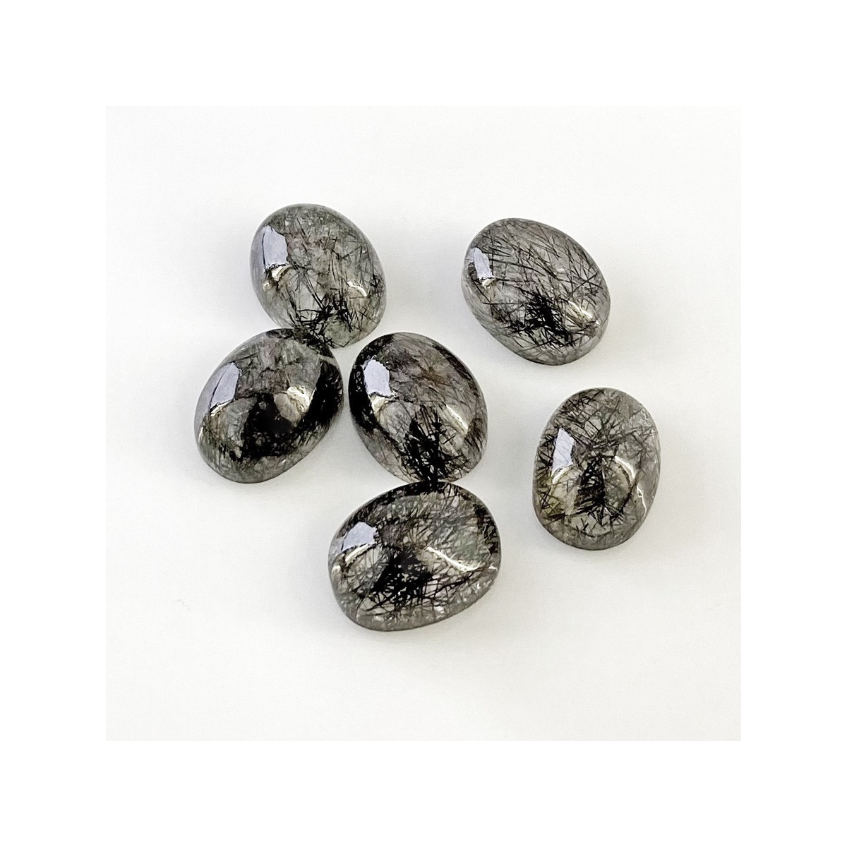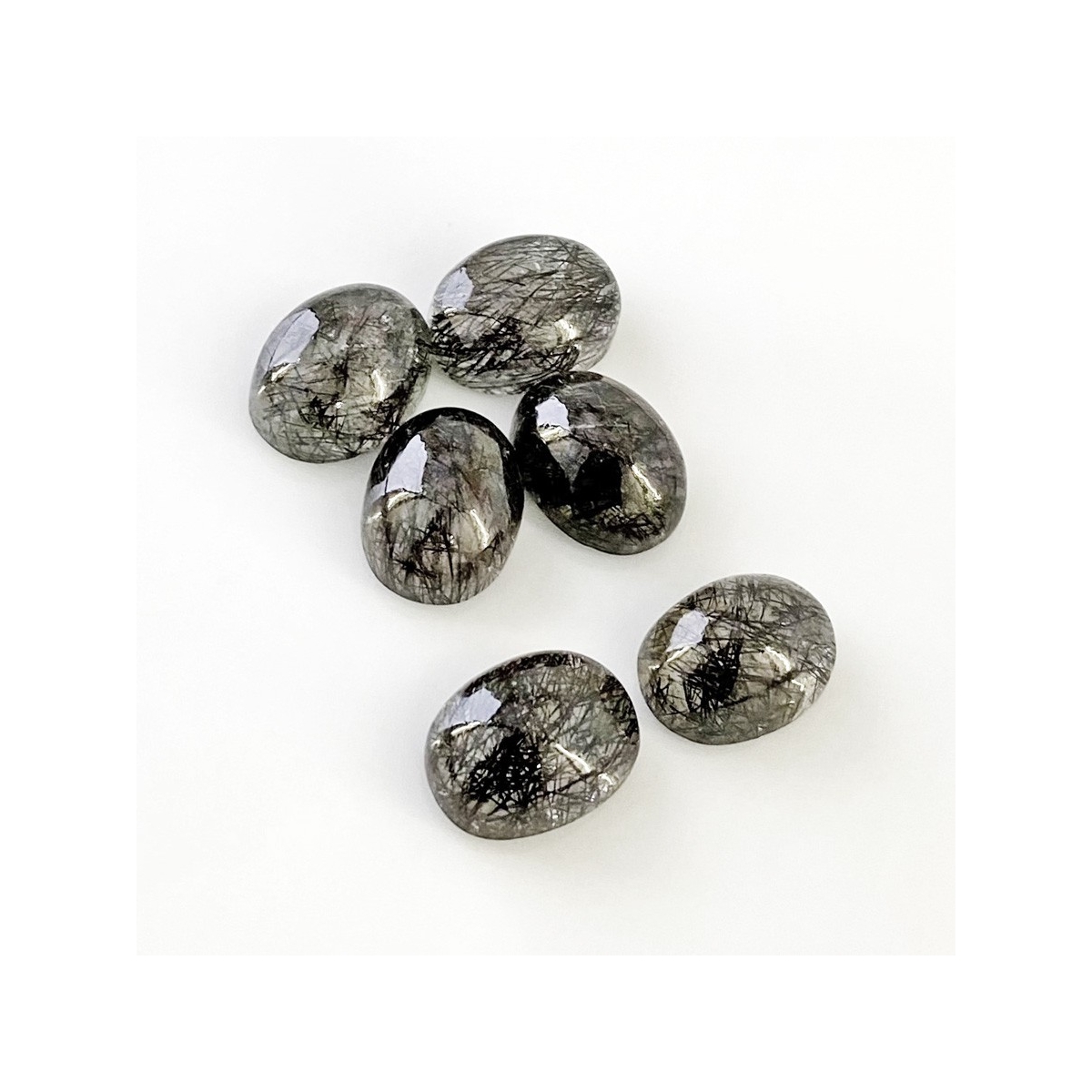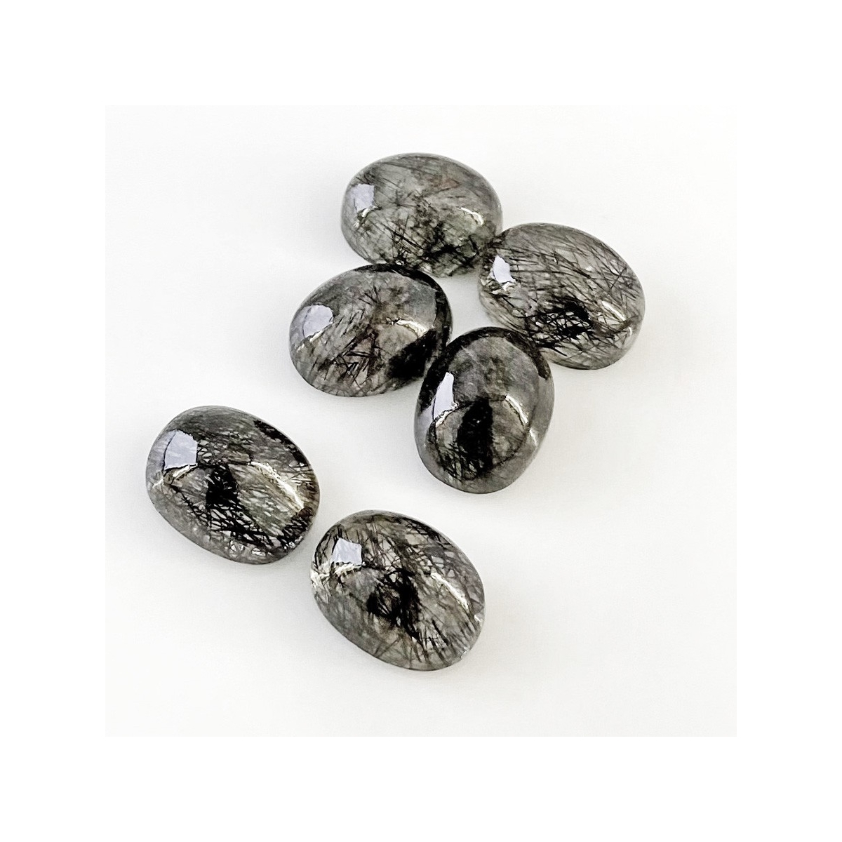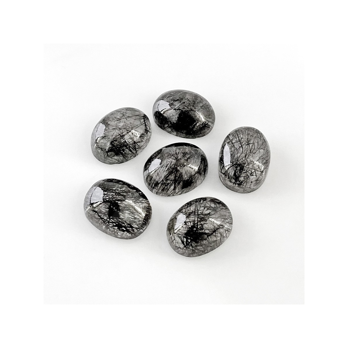Buy This "AA+" Grade 6x12.5mm Smooth Oval Shape Natural Black Rutile (Un-Treated) Cabochons Parcel. You Will Receive 6 Pcs. With a Total Weight of 71.5 Carat. This Black Rutile Stone is Originated From Sri Lanka and Masterfully Handcrafted by The Experienced Artisans of Jaipur (India).