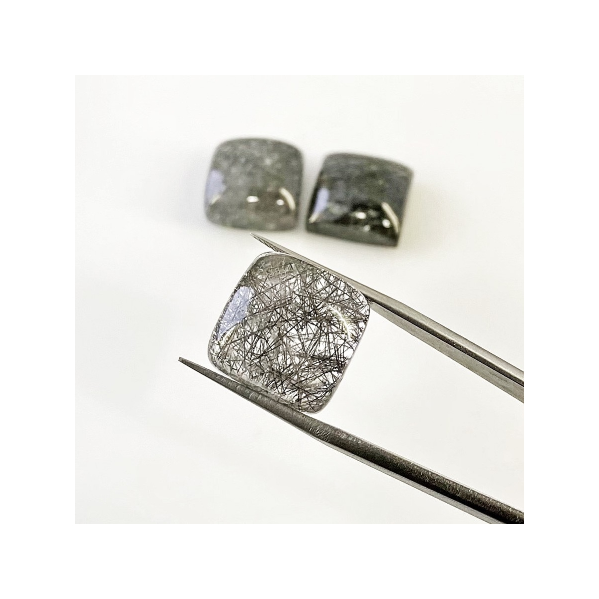 Buy This "AA+" Grade 15mm Smooth Square Cushion Shape Natural Black Rutile (Un-Treated) Cabochons Parcel. You Will Receive 3 Pcs. With a Total Weight of 56.9 Carat. This Black Rutile Stone is Originated From Sri Lanka and Masterfully Handcrafted by The Experienced Artisans of Jaipur (India).